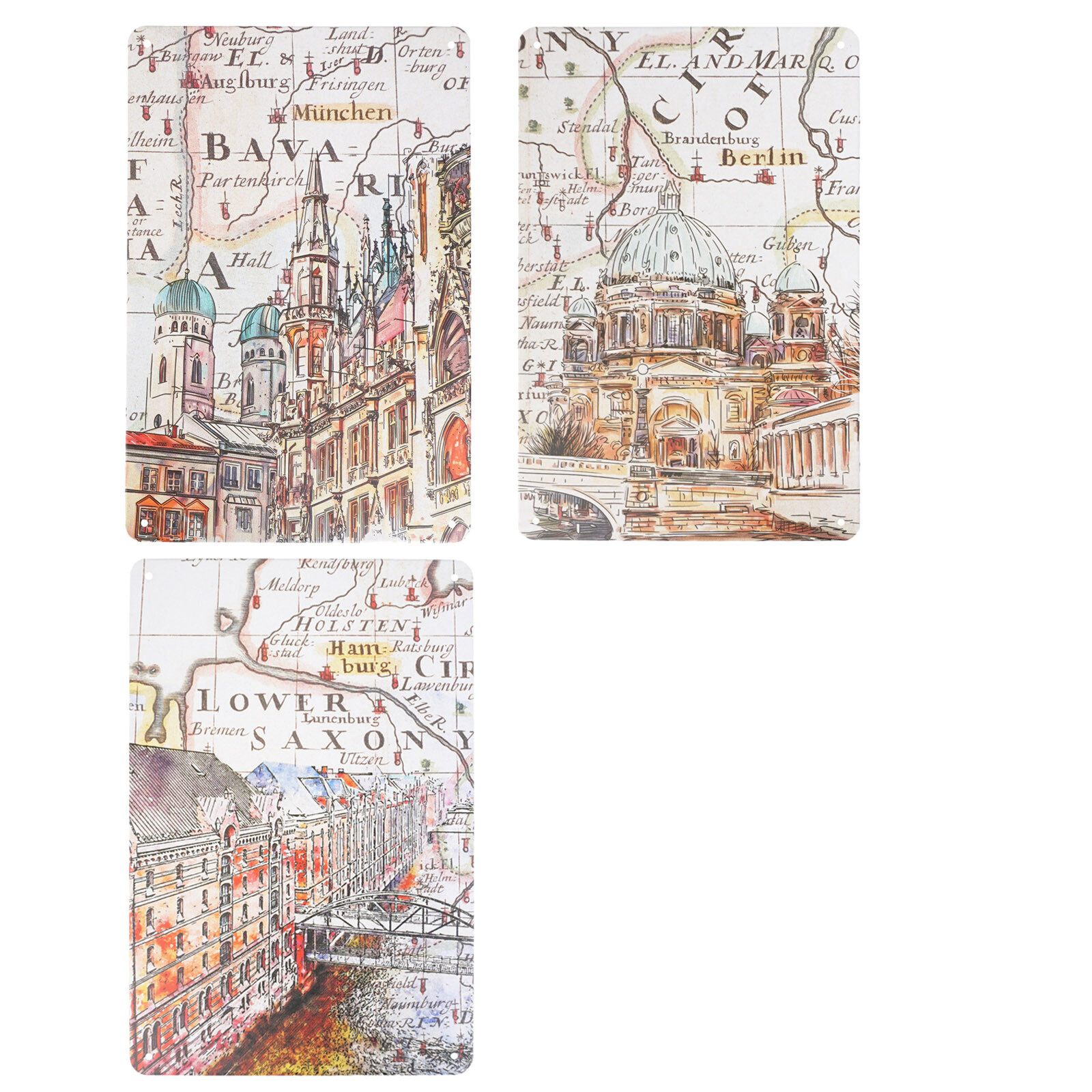 Deutsche Städte Blechschild Set | 3 Stk Retro Metallschild | 30 x 20 cm | Berlin