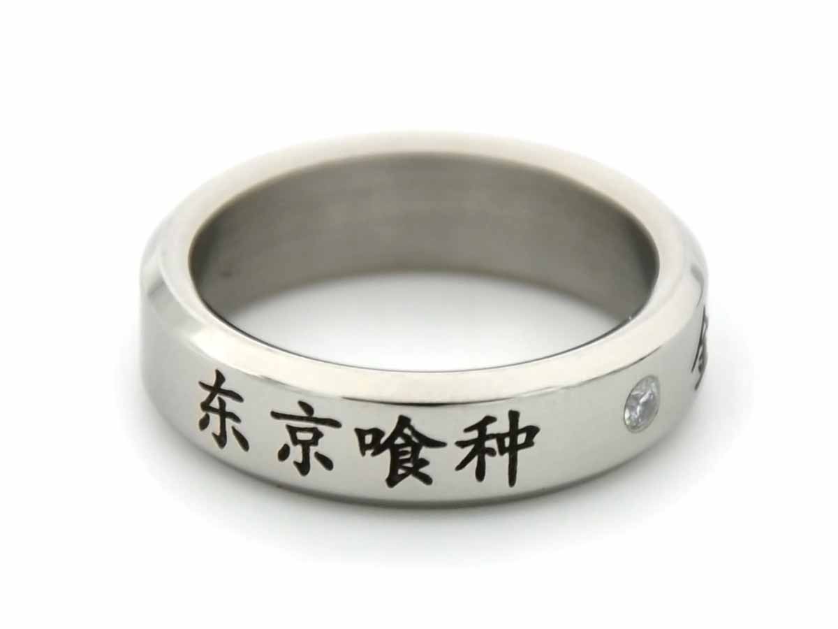 Sofort Kauf Dezenter Ring mit Schriftzug und Schmuckstein für Tokyo Ghoul Fans | Edelstahl