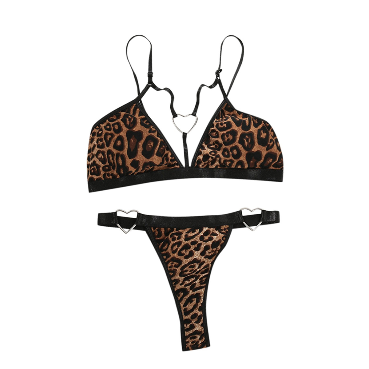 Womens Sexy Lingerie Leopard Bra Ladies Thong Underwear Set Nightwear Sleepwear