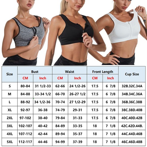 High Impact Sports Bra Women's Shockproof Front Zipper Closure Adjustable Straps