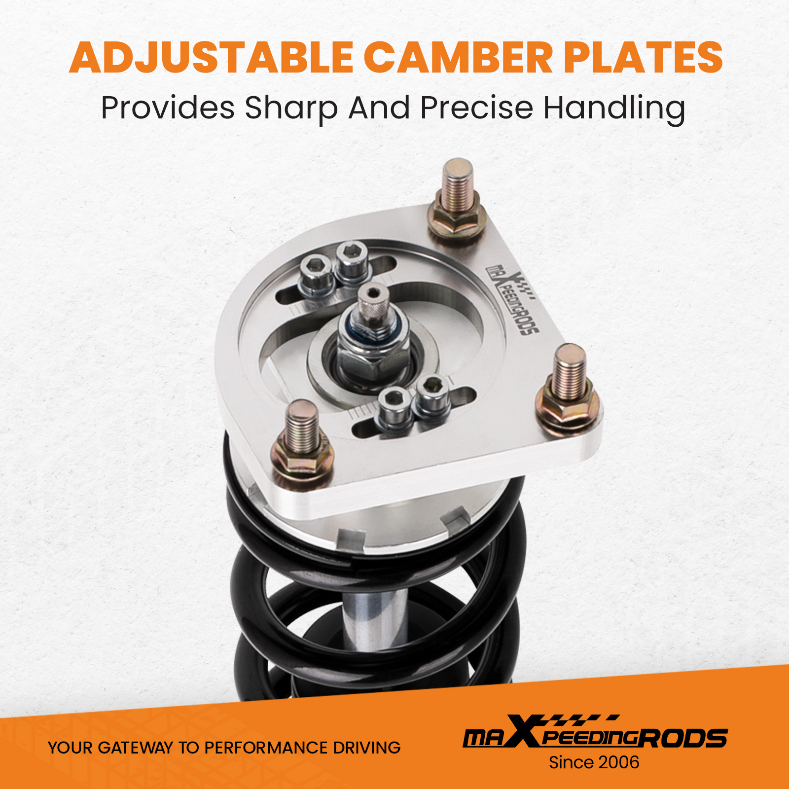 4. Adjustable Camber Plate and Pillow ball top mount for sharpening steering response. ( for some models)
