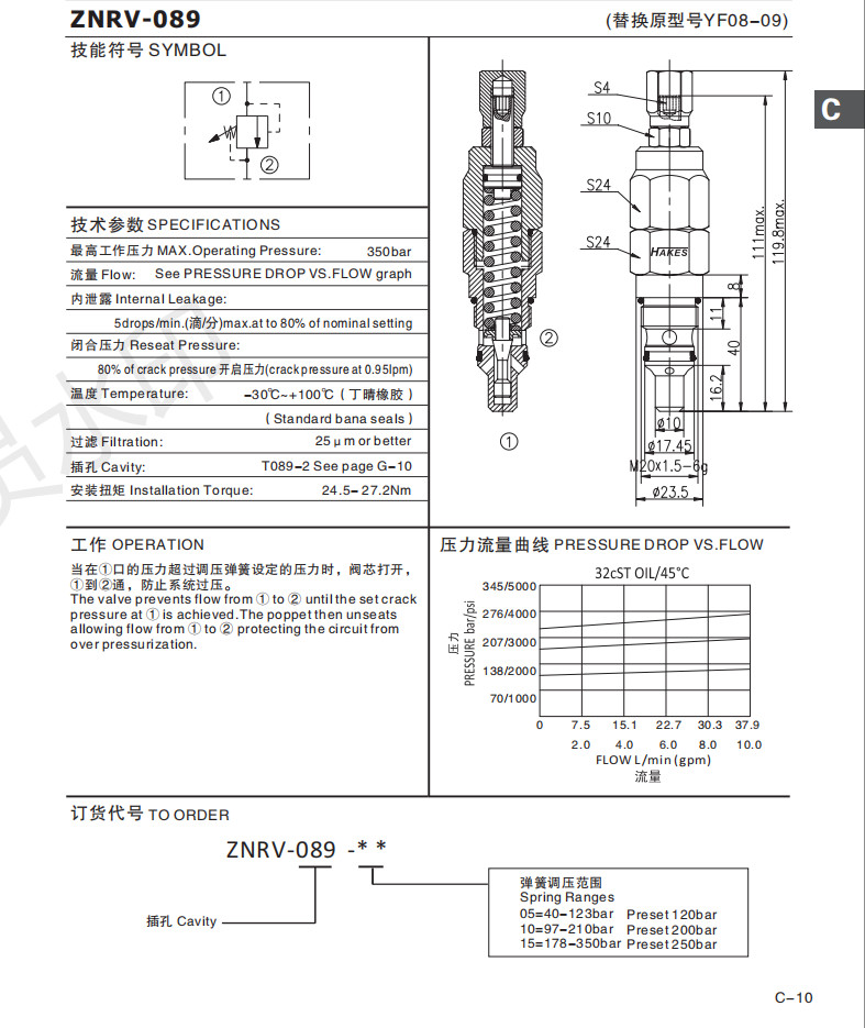 YF08-09 relief valve regulator RV-089 hydraulic valve threaded cartridge valve