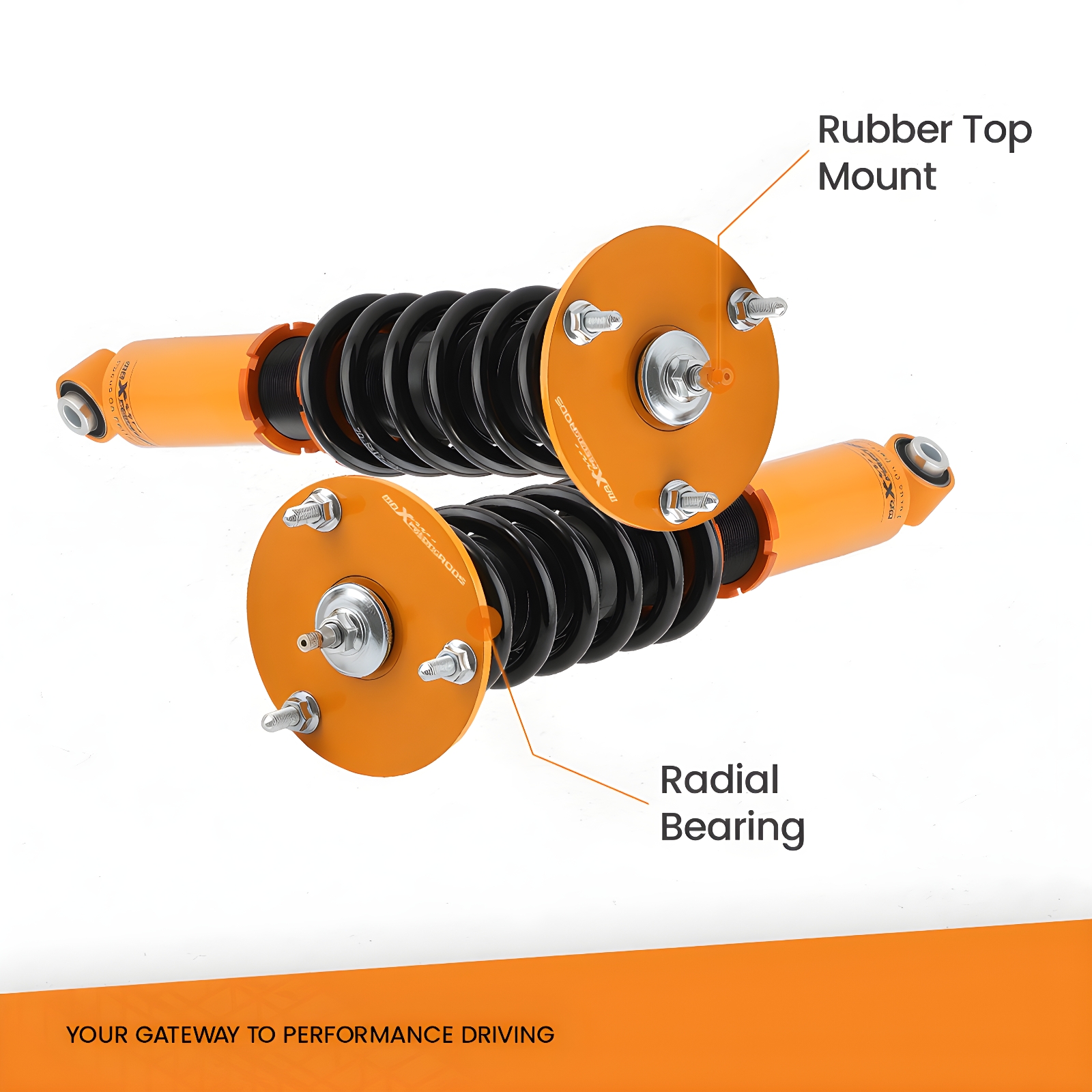 4. Adjustable Camber Plate and Pillow ball top mount for sharpening steering response. ( for some models)