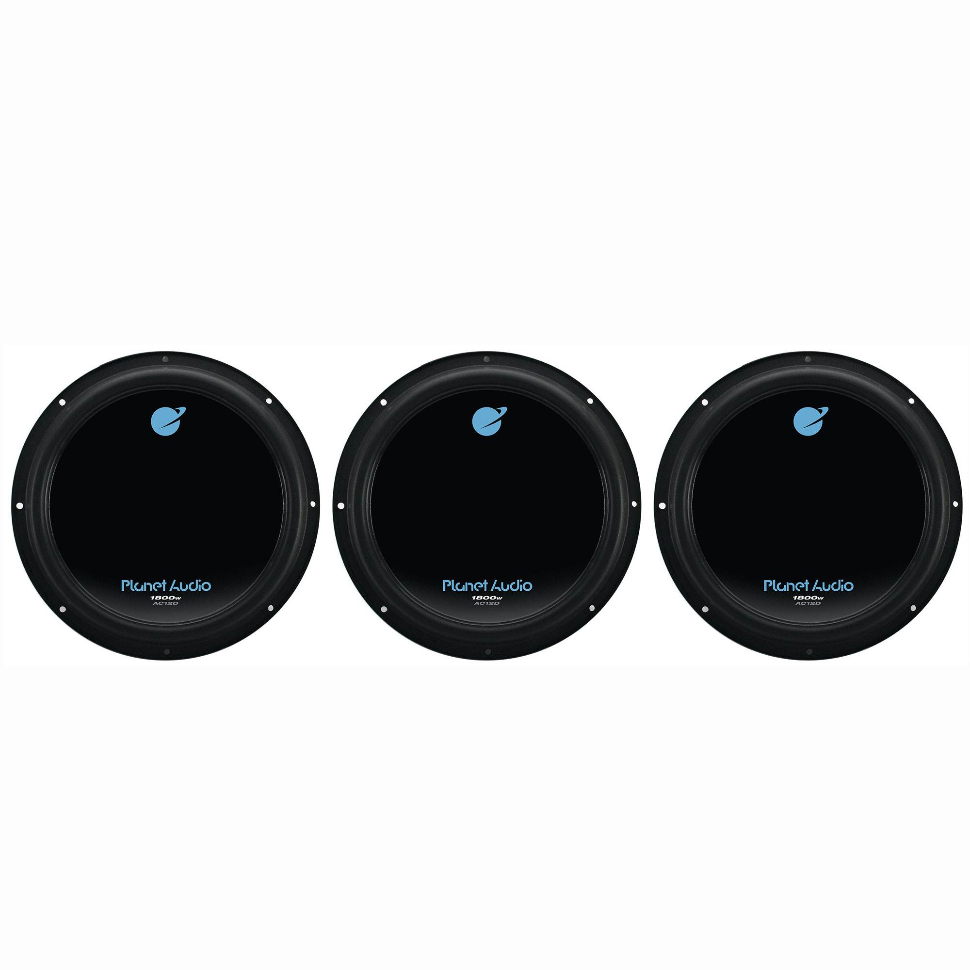 The 3-Pack Planet Audio 12 Inch 1800W Dual 4 Ohm Voice Coil Car Audio Subwoofer can handle 1800 watts of MAX power and 900 watts of RMS power. Other features include a mounting depth of 5 3/8 inches and an impedance of 4 ohms.
