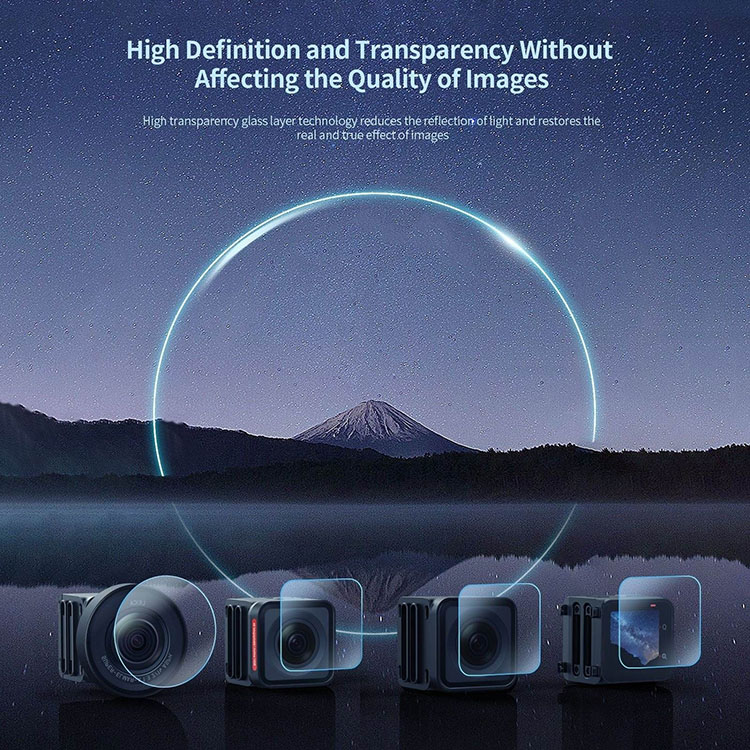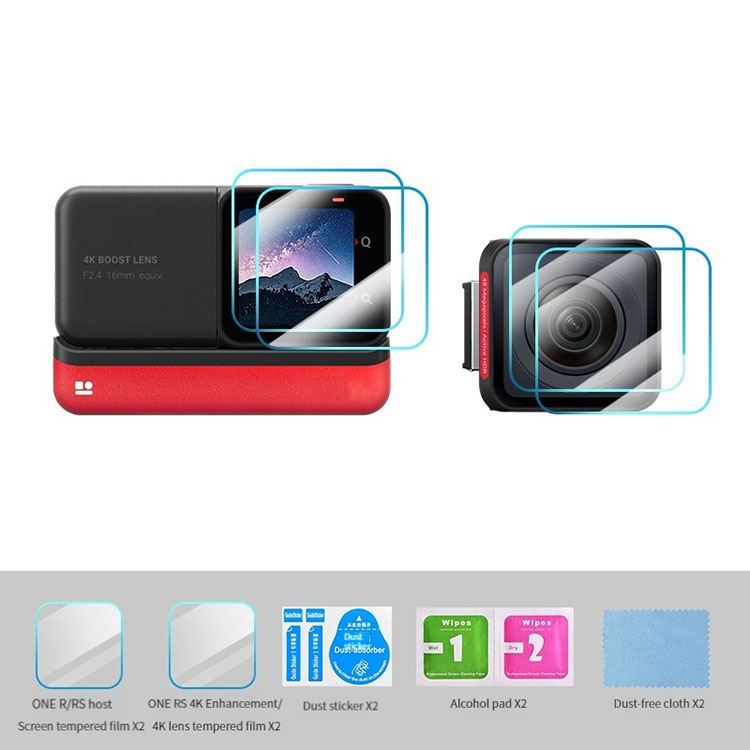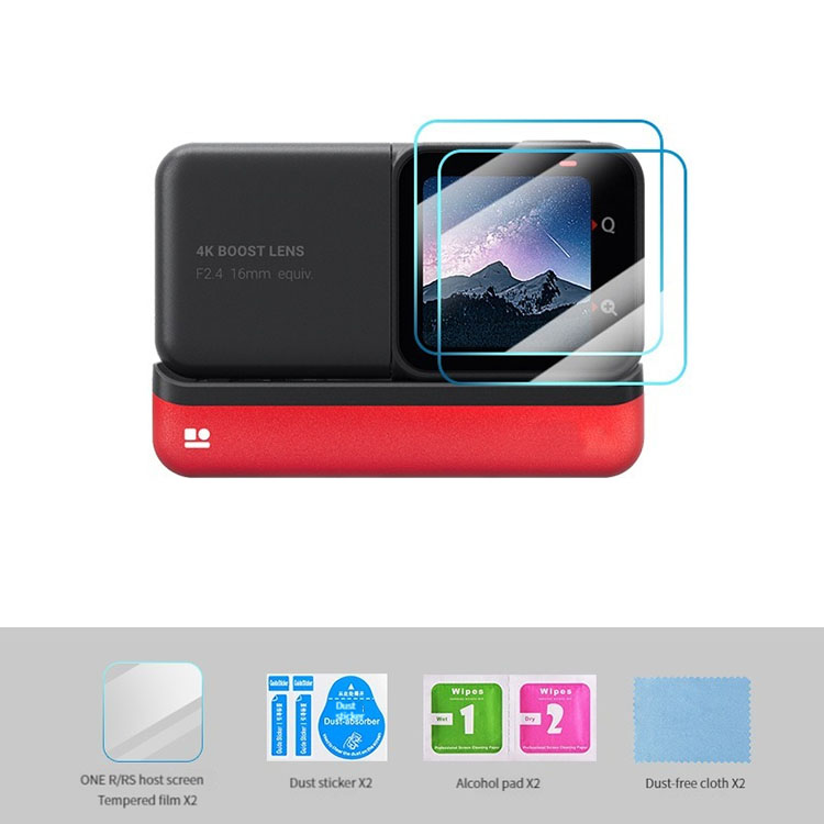 Features: l Real machine 1:1 open mold, no dead angle all-round protection l 9H+high hardness diamond-level explosion-proof, reinforced glass fiber material layer, full energy, efficient explosion-proof l Multi-layer material compound reinforcement, effectively prevent scratches, wear and tear, while waterproof, dirt-proof, anti-fingerprint l Highly translucent glass layer technology, reduce light reflection, high-definition photography more focused, non-destructive image quality l Nanoscale adsorption technology, a touch of the slide to bring a sense of bare-metal-like unhindered control experience l Compatible with ONE RS Host Screen, ONE R Host Screen, 4K Wide Angle Boost Lens, 4K Wide Angle Lens, One Inch Wide Angle Lens Specification: l Material: Tempered Glass l Size: 85x60x15 mm³ l Thickness: 0.4mm l Rigidity: 9H l Types (Optional): 1x (RS/R Host ) Glass, 2x (RS/R Host ) Glasses, 1x (RS/R Host+4K Wide Angle) Glass, 2x (RS/R Host+4K Wide Angle) Glasses, 1x (RS/R Host+One Inch) Glass, 2x (RS/R Host+One Inch) Glasses l Application Model: for Insta360 ONE RS/R Package: l 1x (RS/R Host ) Glass Or l 2x (RS/R Host ) Glasses Or l 1x (RS/R Host+4K Wide Angle) Glass Or l 2x (RS/R Host+4K Wide Angle) Glasses Or l 1x (RS/R Host+One Inch) Glass Or l 2x (RS/R Host+One Inch) Glasses Note: l Package includes tempered glass screen protector, wet and dry screen cleaning paper, dust-absorber, lens cloth, protection box