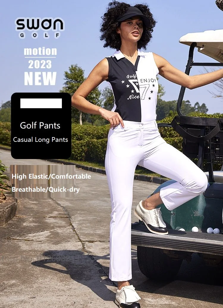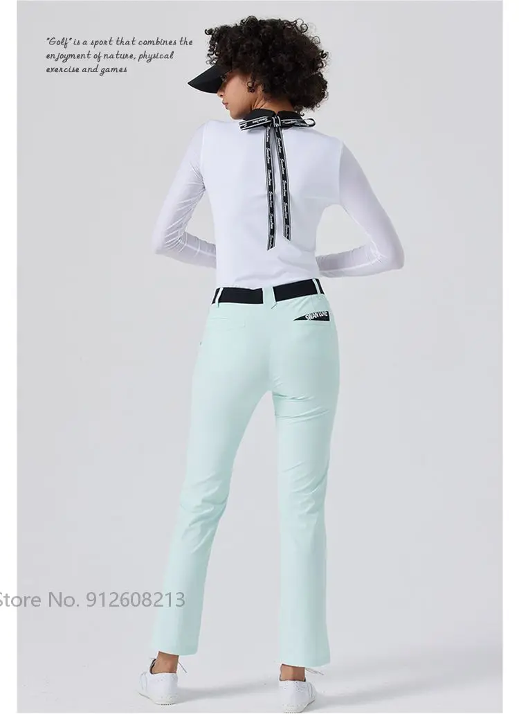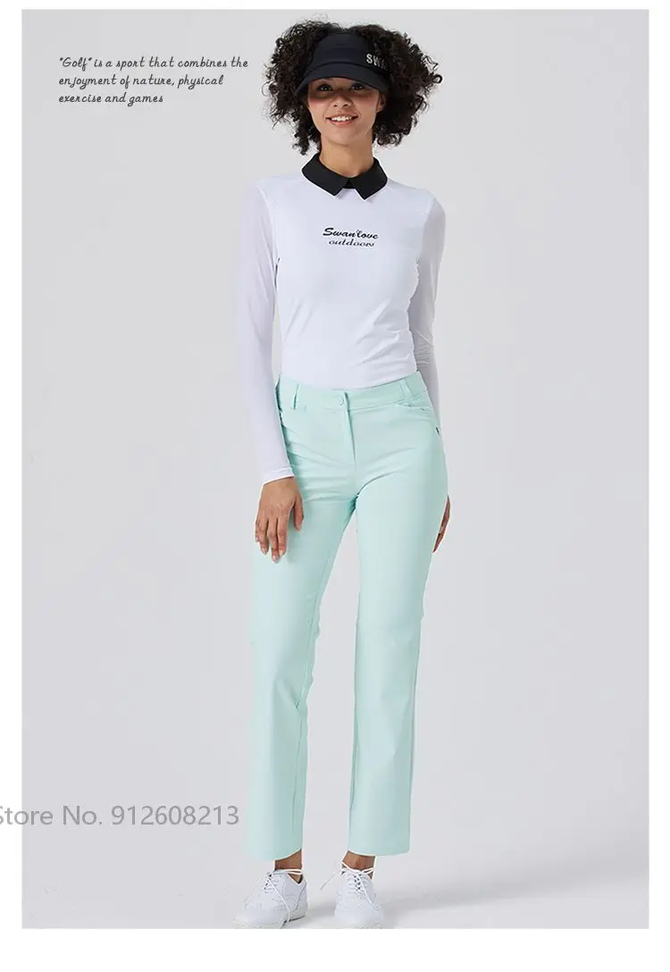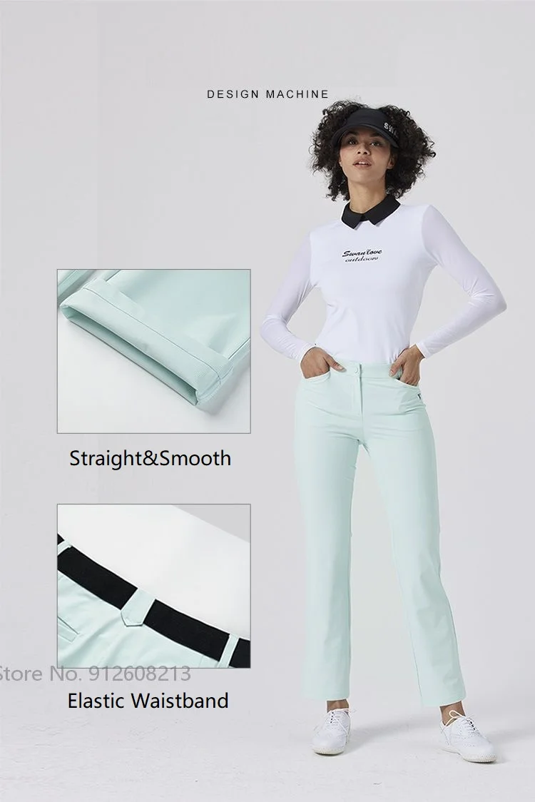 SG Korean Style Women High Waist Sports Straight Pants Girl Fast Dry Golf Trousers Outdoor Casual Golf Wear Slim Elastic Bottoms