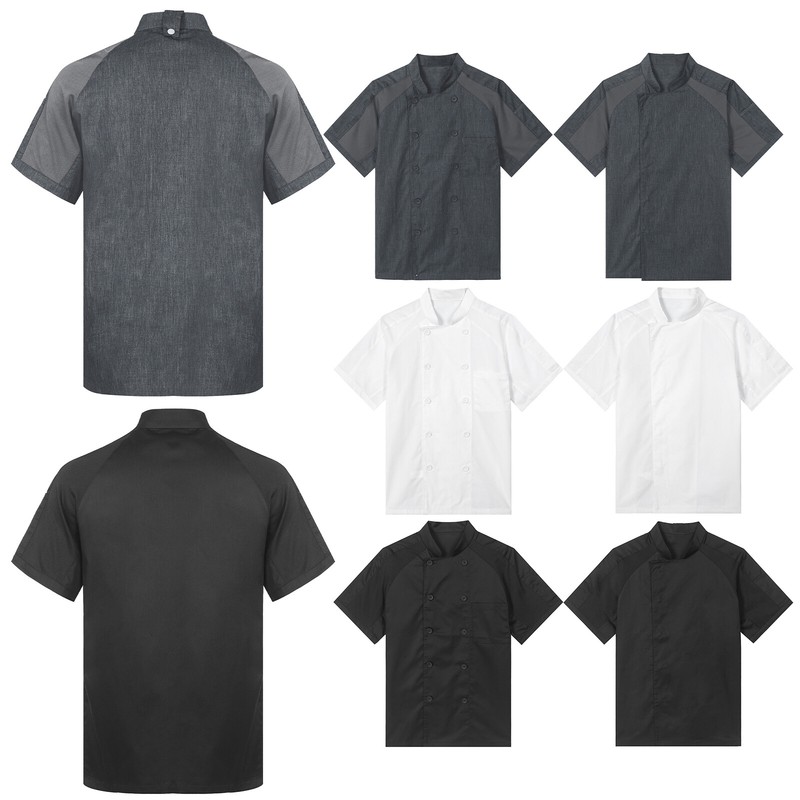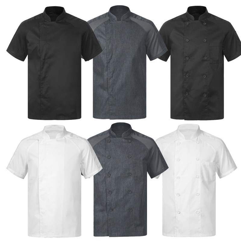 Unisex stand collar chef jacket, raglan sleeves with breathable mesh panels for enhanced mobility and comfort.