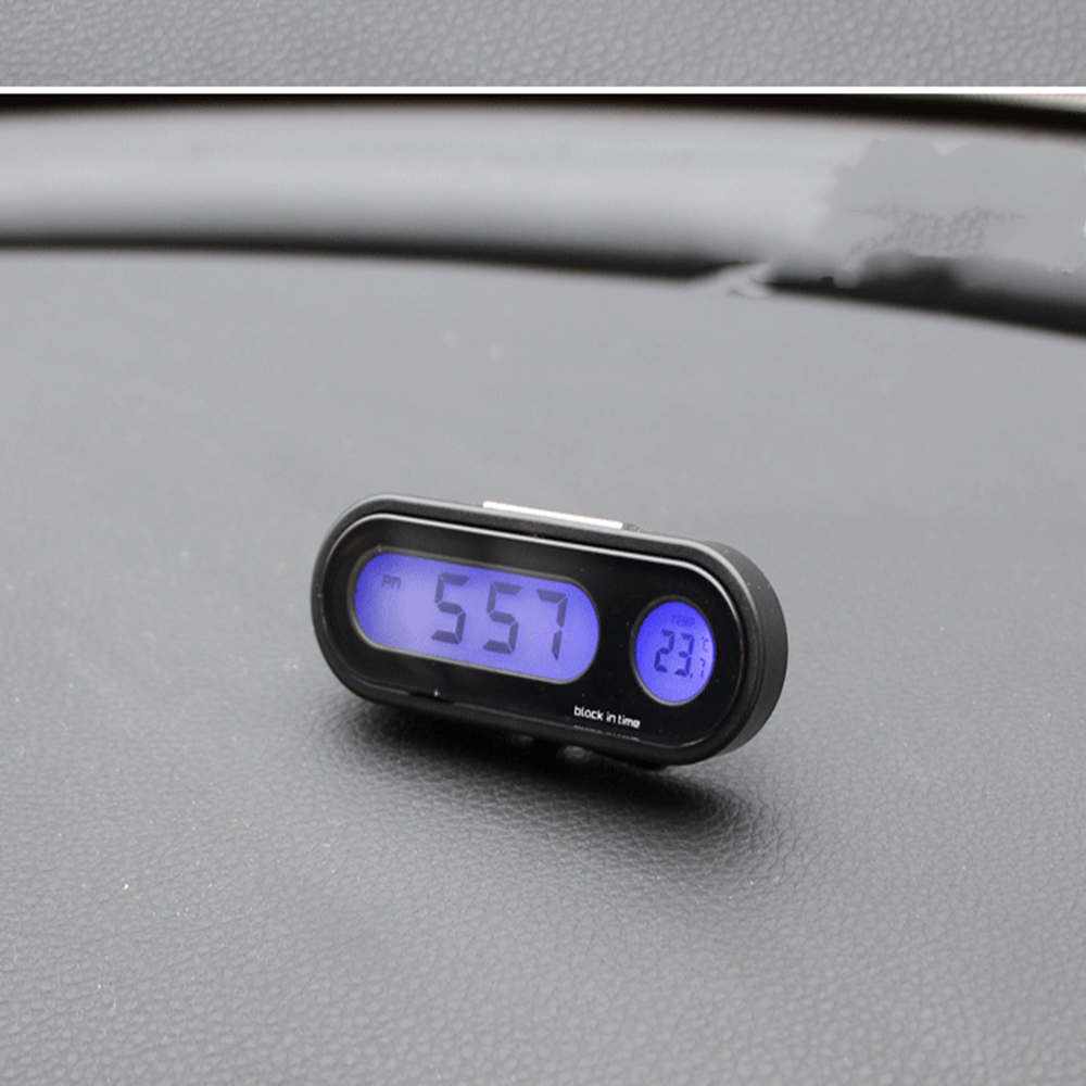 Car Mini Electronic Clock Time Watch Auto Dashboard Clocks Luminous Thermometer Black Digital Display Car Styling Accessories