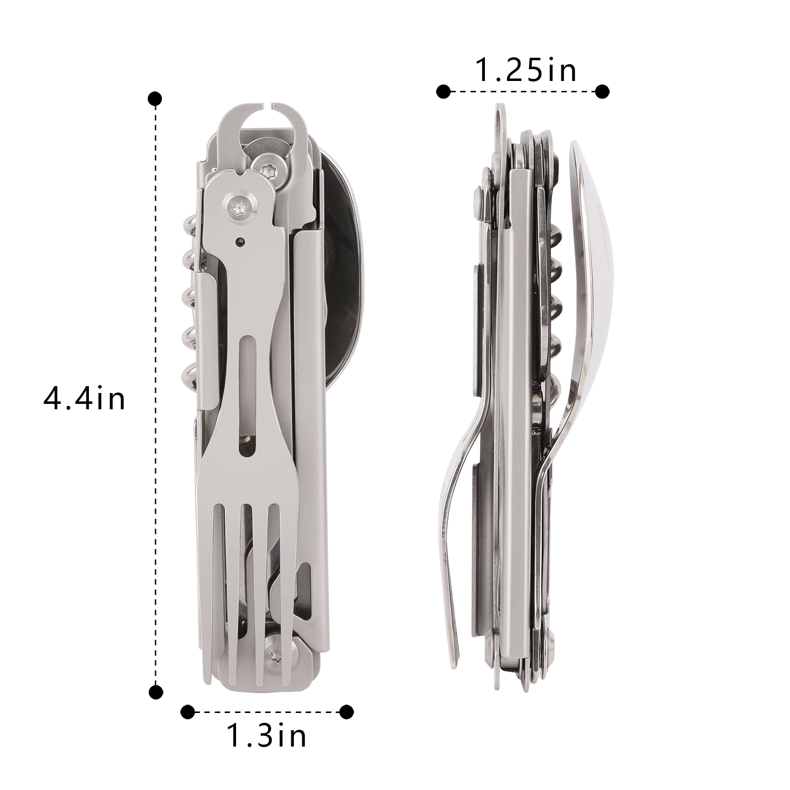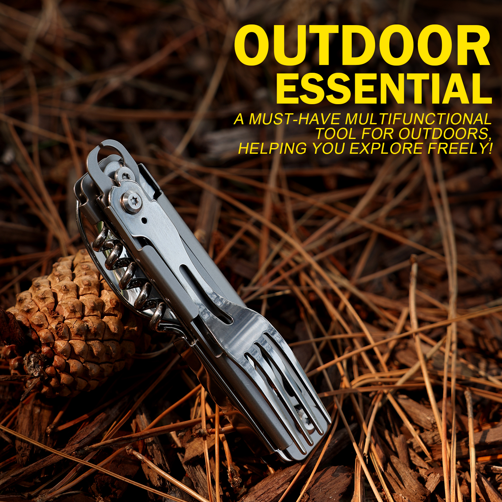 5-in-1 Folding Multi-functional Cutlery: Includes knife, fork, spoon, wine corkscrew and can opener. Outdoor camping portable multifunctional cutlery set saves space, perfect for camping, traveling, office, college school, car, backpacking, picnic, hiking and other occasions to carry.