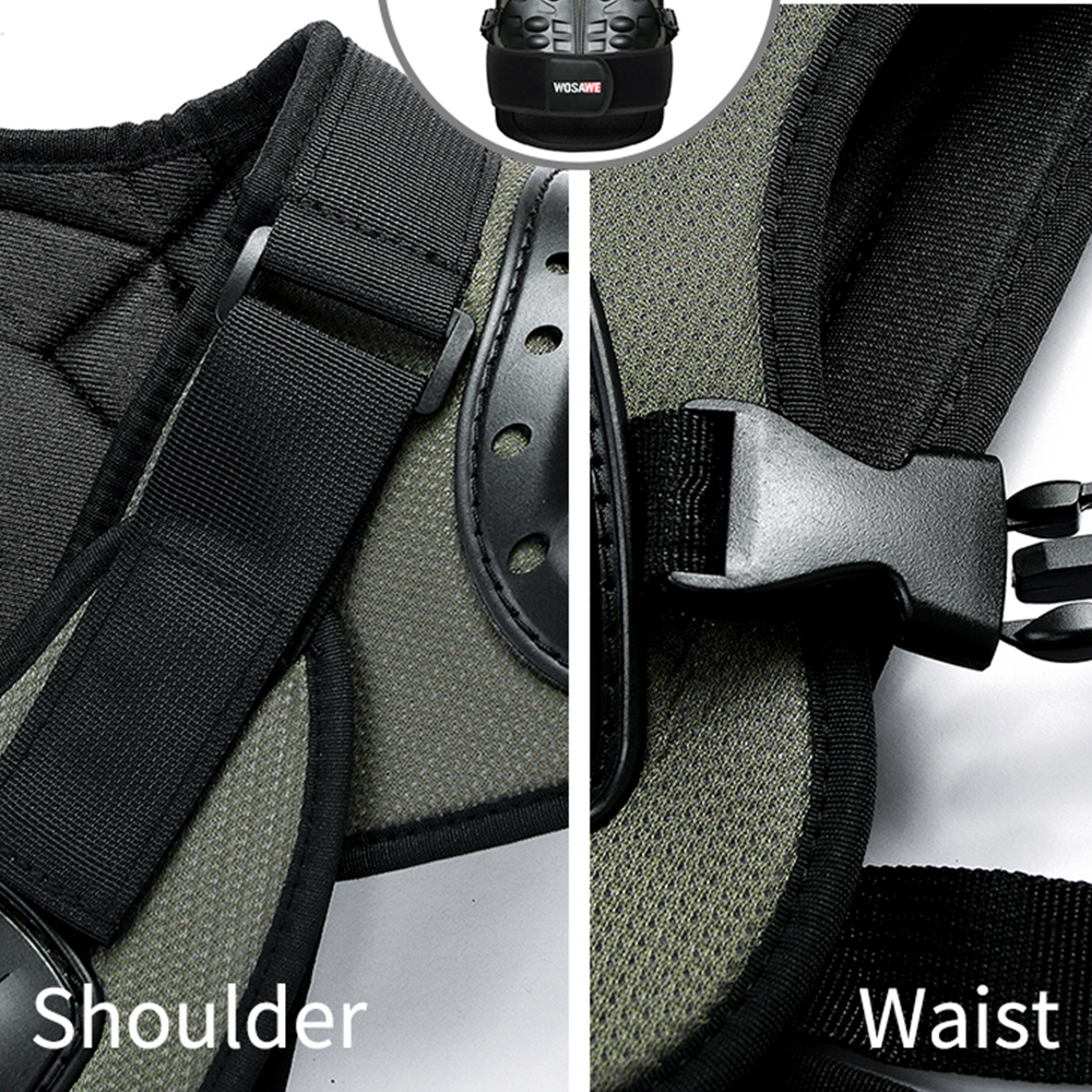 Detachable front and back armor, controlled by double Hook&Loop at shoulders and quick release buckle at waist