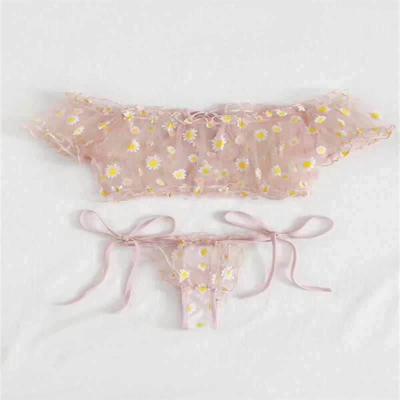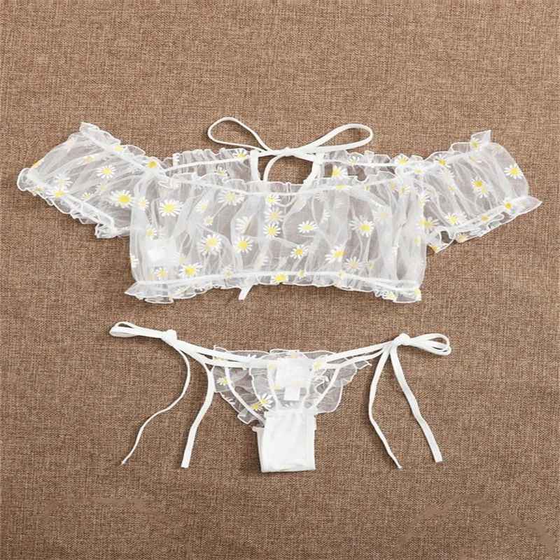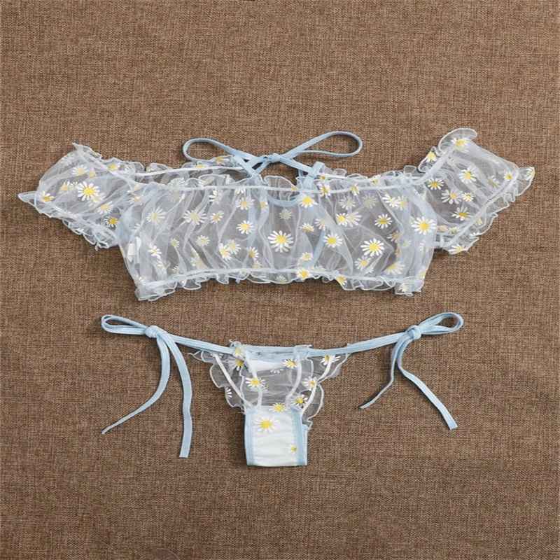 Cross-Border Supply European and American Foreign Trade Sexy Lingerie Sexy Women's Lace See-through Three-Point Underwear Set.