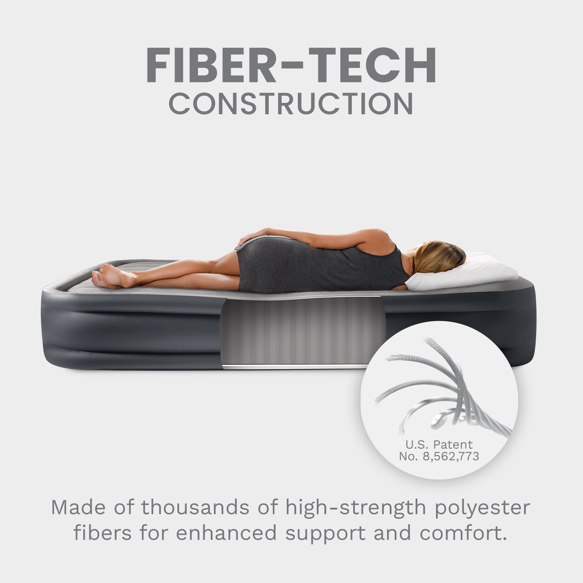Perfect to take camping or to use as an extra bed for house guests, this inflatable air mattress features Fiber-Tech interior construction for firmness and support. The velvety mattress top allows for comfortability and softness, making anywhere the perfect spot for sleep and relaxation.