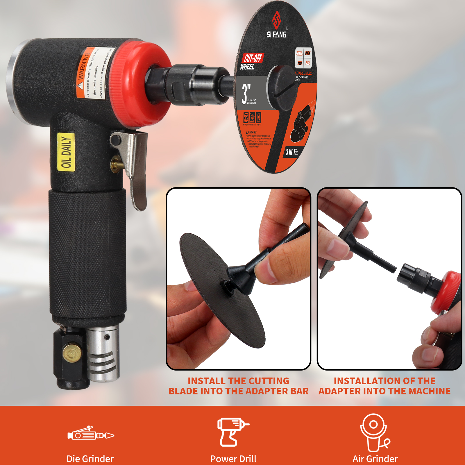 Easy to install and remove, it really is the perfect must-have die grinder accessories attachments,Compatible with Die Grinder, Angle grinders,Air Cut Off Tool and Electric Cut Off Tool.