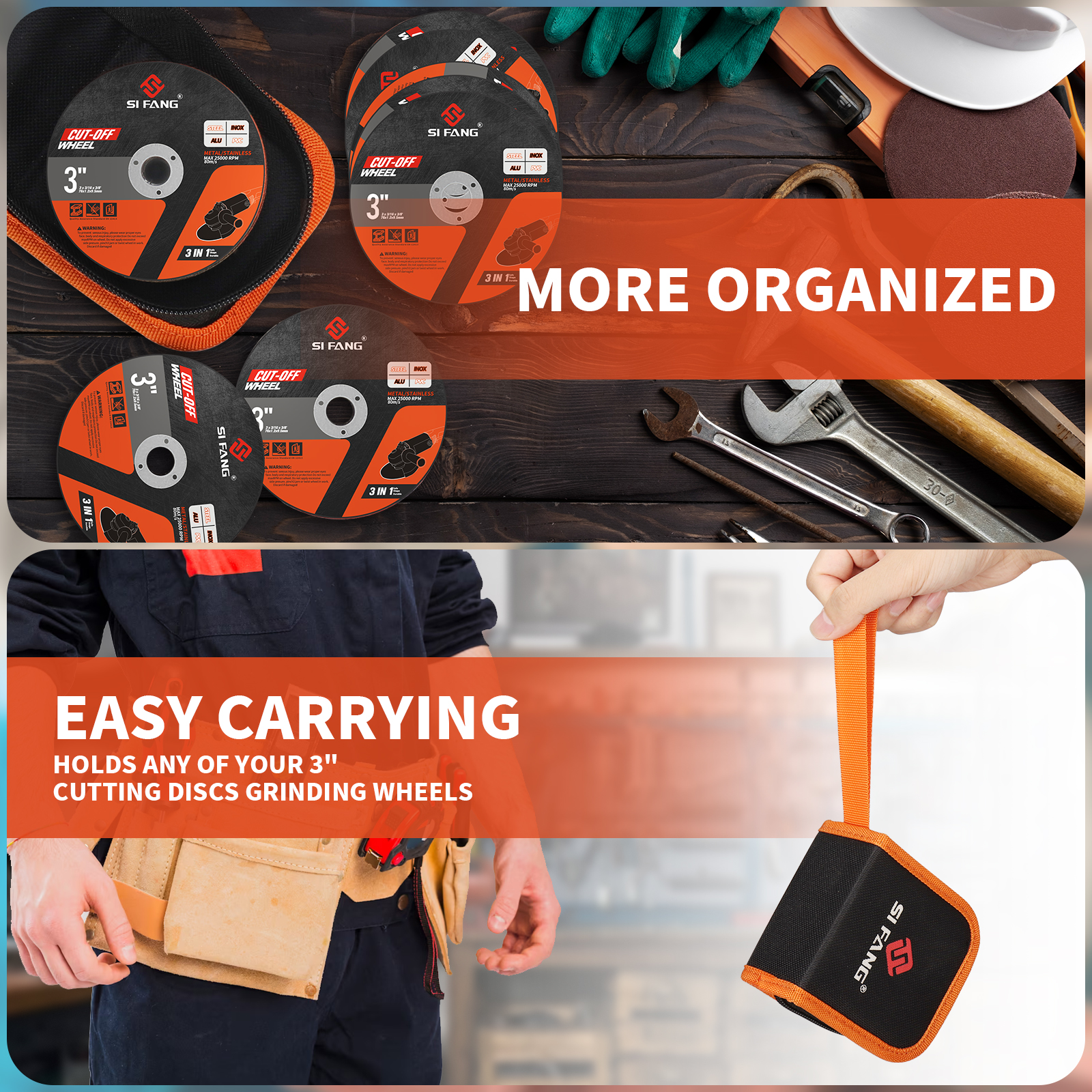 3 inch cut off wheels are made of long-lasting and valuable single crystal corundum & calcined corundum, the double reinforced fiberglass mesh and its balanced material structure make these cutting wheels safer and not be easily broken.