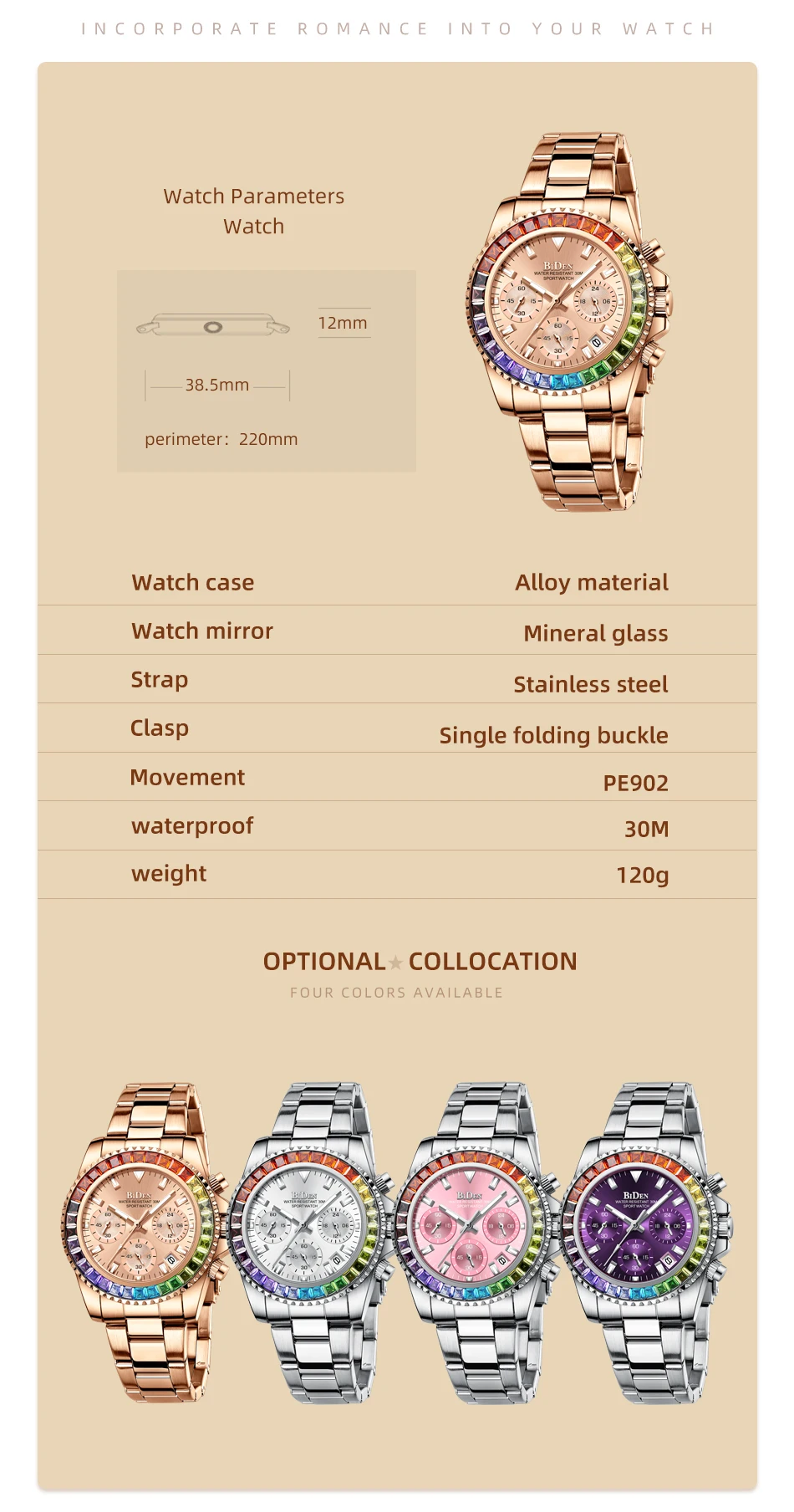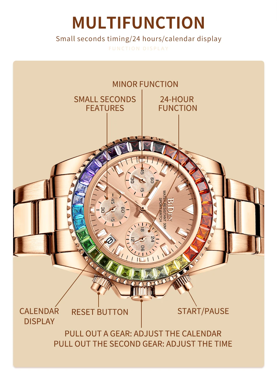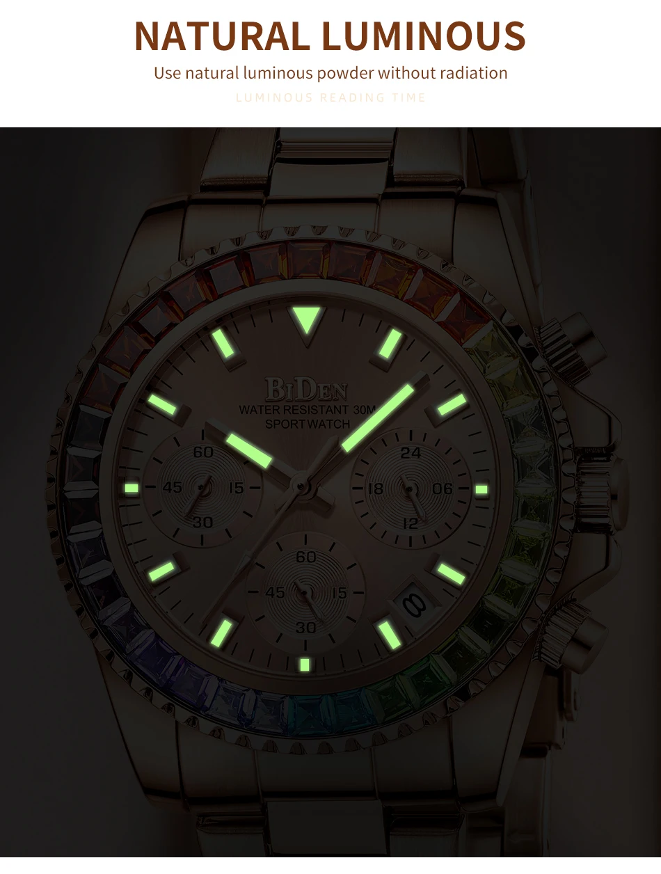 -Feature : Chronograph watch , calendar , Luminous hands , 12/24 hours , 30M waterproof