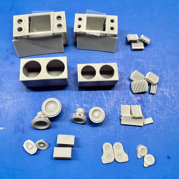 Components are sold separately as listed below. 12 different items to choose from:- Bandpass speaker box for 15s (1 box - 3 pieces)- Bandpass speaker box for 12s (1 box - 3 pieces)- Generic speaker box for 15s (1 box)- Generic speaker box for 12s (1 box)- 15" subwoofers (2 speakers)- 12" subwoofers (2 speakers)- 6x9 speakers (2 speakers)- 6x9 speaker boxes (2 boxes)- speaker pods (4 mirrored pods - 2 of each)- Rockford Fosgate Punch IX amplifiers (3 amps + connector)- Rockford Fosgate Punch HD amplifiers (3 amps)- Orion amplifiers (3 amps + connector) Clear acrylic cover for bandpass boxes should be trimmed to size. Remove protective film from both sides for crystal clear look. Decal sets are now available (separate listing). If you are not familiar with resin, please research before purchasing. These are not for beginners. As with all resin, this will need some work like sanding smooth, cleaning flash, evening out surfaces, filling pinholes, reshaping, and/or fabricating parts. With the heat that occurs during shipping, some parts may slightly warp. Be prepared to reshape using the hot/cold water method. Resin color may vary from pictures. Color may not match all parts. Assembly instructions are not included. Please use pictures for reference.