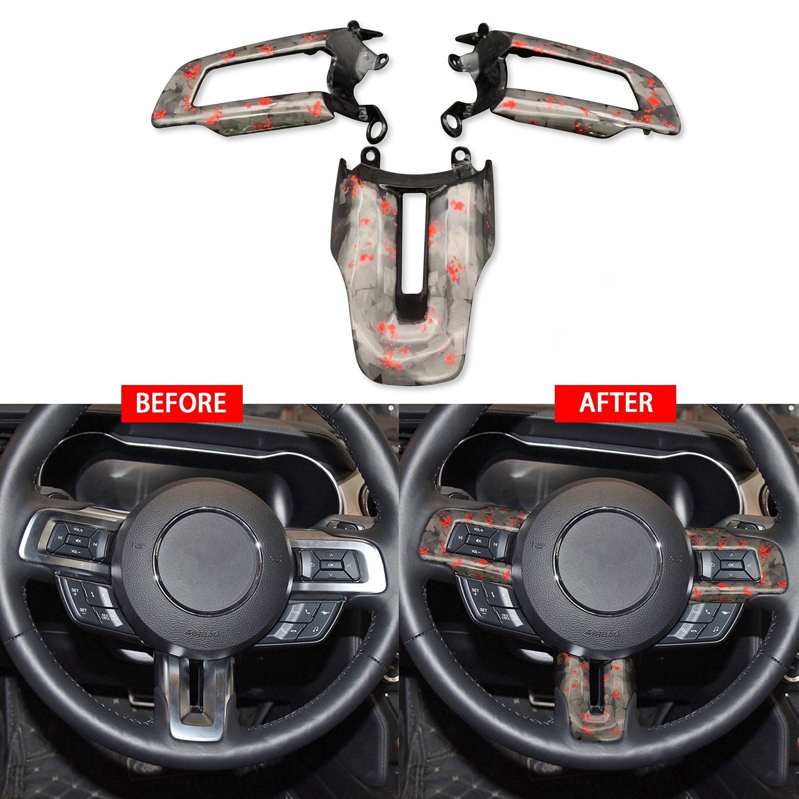 Gold Forged Fiber Interior Steering Wheel Cover Trim Accessory For Ford Mustang