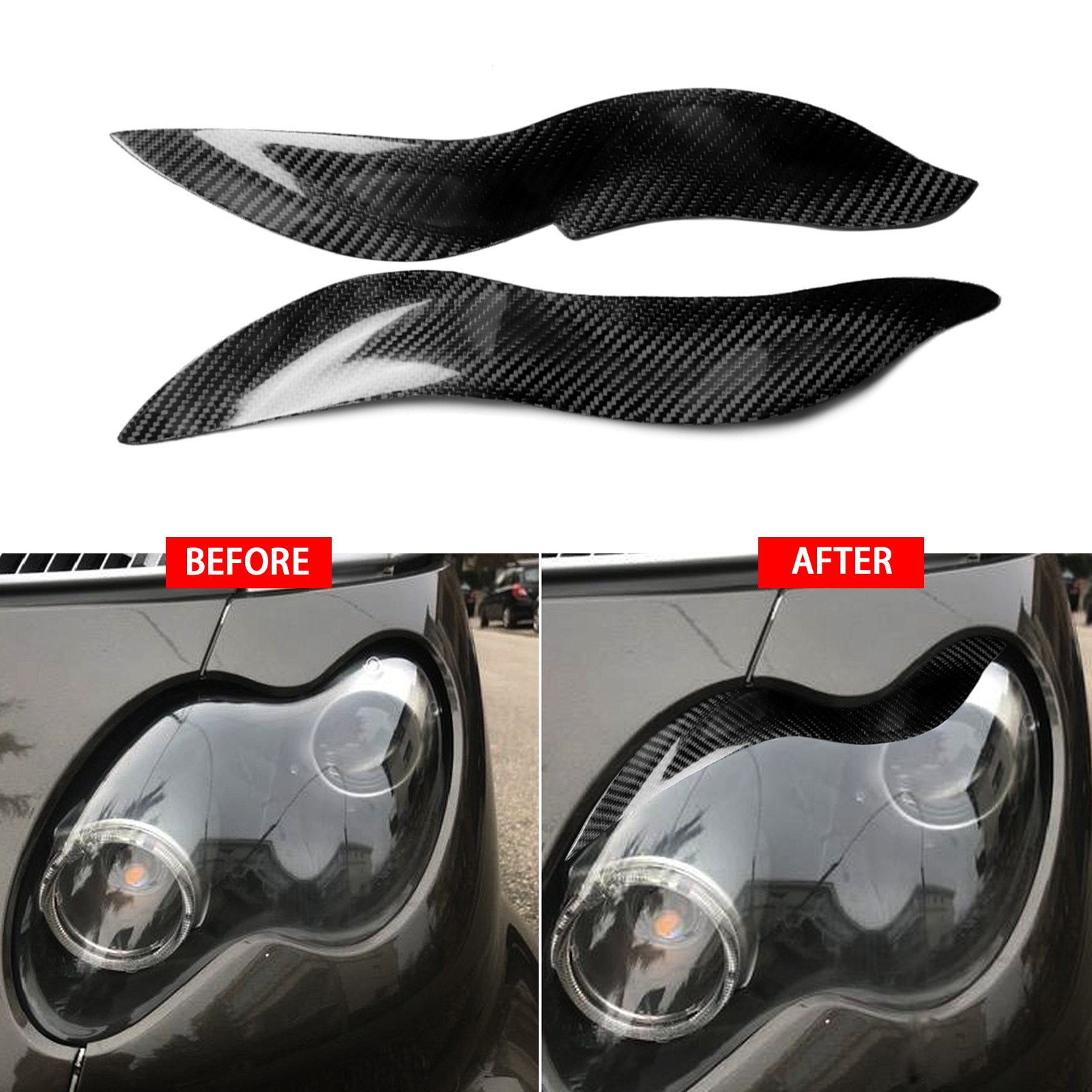 2pcs/set Carbon Fiber Headlight Eyelid Eyebrow Cover