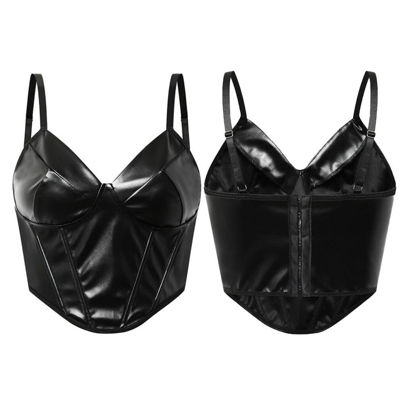 Women’s summer fashion faux leather tank tops, sleeveless and scoop neck.