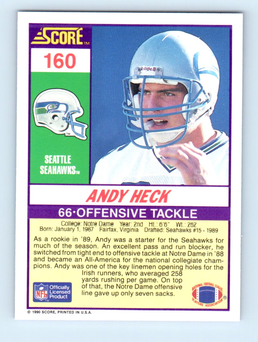 | 1990 Score Andy Heck Seattle Seahawks #160 |