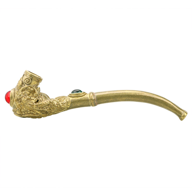1 PC Handmade Brass Carving Dragon Smoking Pipe Metal Cigarette Holder