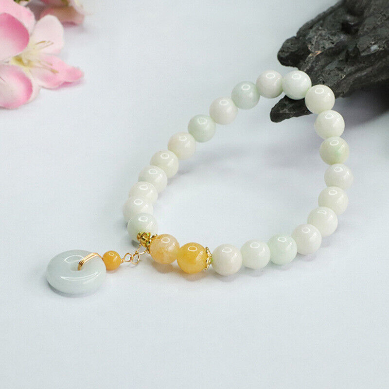 Burmese Jade Donut Bracelets Jadeite Natural Jewelry White Bead Bracelet Women