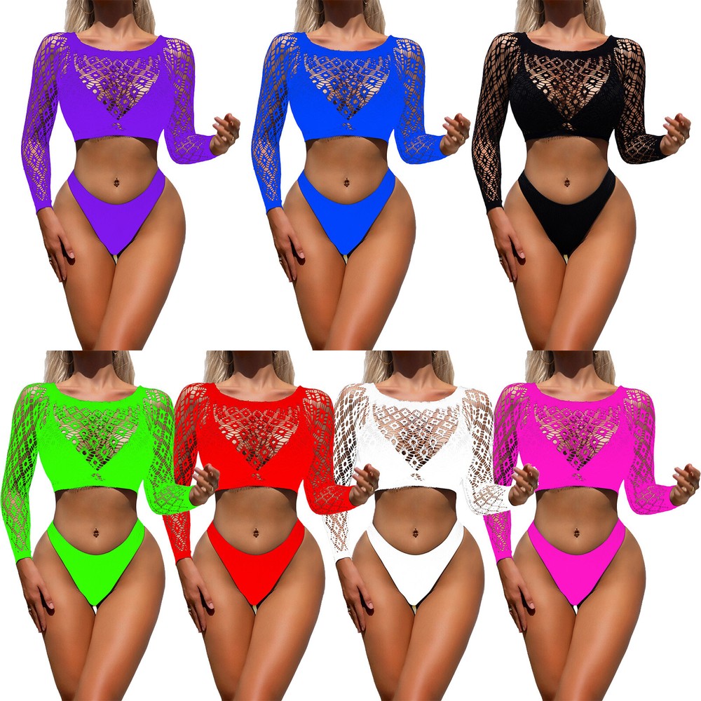 Women's Crop Top Cover Up T-Shirt Hollow Out Tank Tops Lingerie Nightwear Mesh