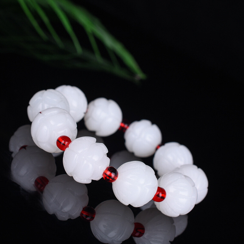 White Jade Lotus Bracelet Gift Bead Amulet Natural Accessories Carved Jewelry