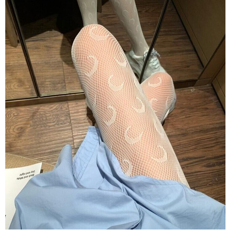 Women Stockings Fishnet Moon Pantyhose Open crotch White Tights Underwear