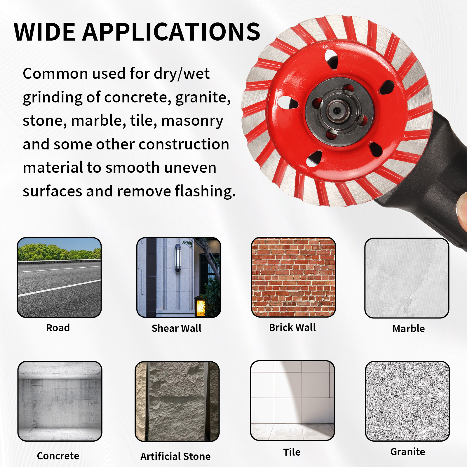 - Applications:Suitable for grind on marble, tile, concrete, rock, etc.