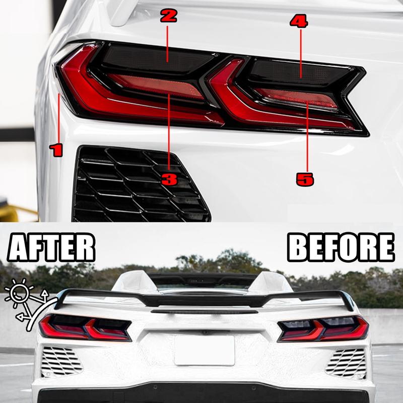If you are looking for away to set your car apart from the rest. This for Corvette C8 10 piece Tail Light Blackout Kit is the way to go. Designed specifically for the new redesigned for Corvette C8 2020,2021 models... ( Fits all models coupes and convertibles, Base, Z51 models )