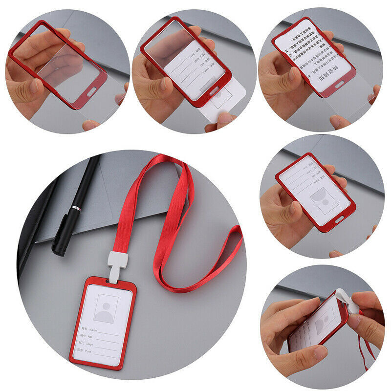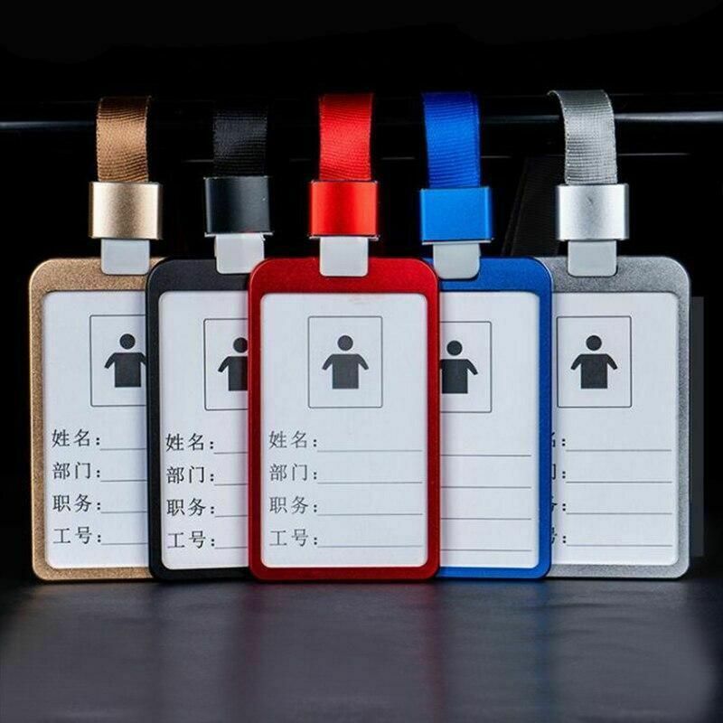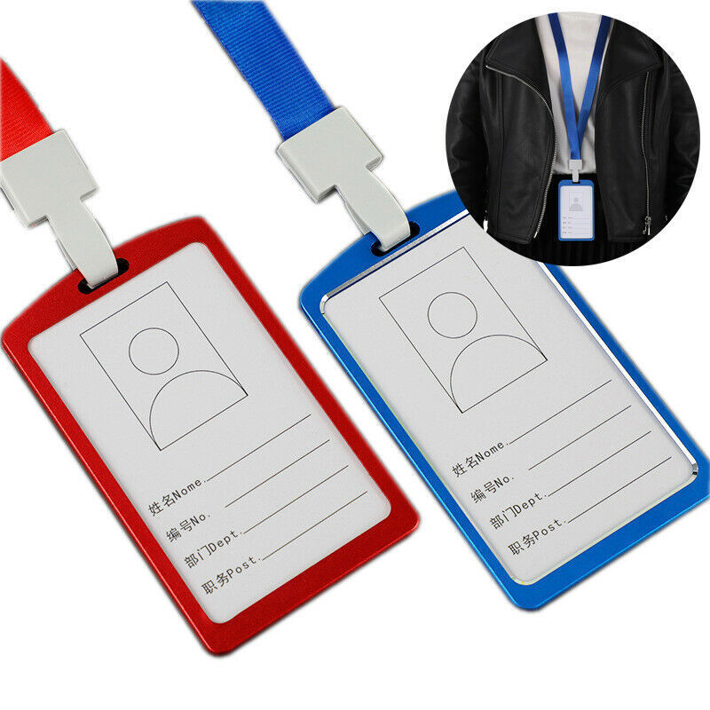 Business Work Card ID Badge Lanyard Holder w/ Neck Strap Cover Metal Bags Case Office Aluminum Alloy Working Case Reel Credit Card Name Tag Pass Visa