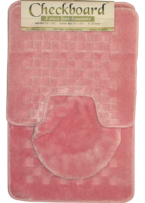 Create a warm and inviting space with this stylish and unique 3 Piece Bath Set. Including a Bath Mat, Contour Rug and Toilet Seat Cover, this affordable bath set allows you to customize your bathroom with a cohesive design for a complete look. Affordable and fashion-forward, this bath set is sure to upgrade your bathroom at a great value.