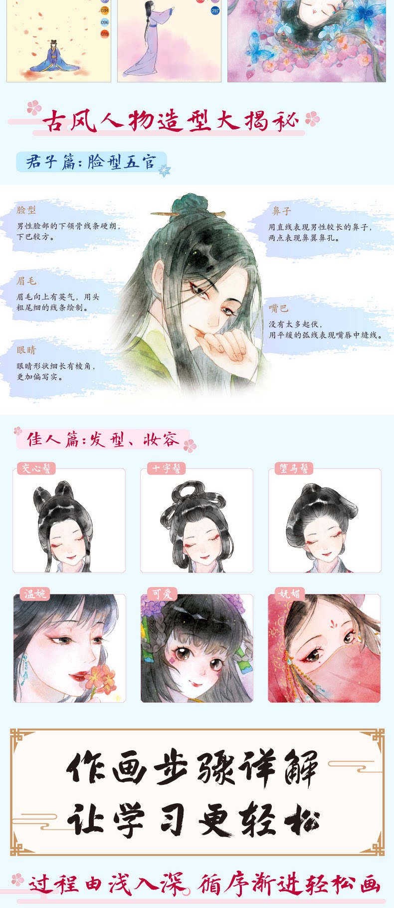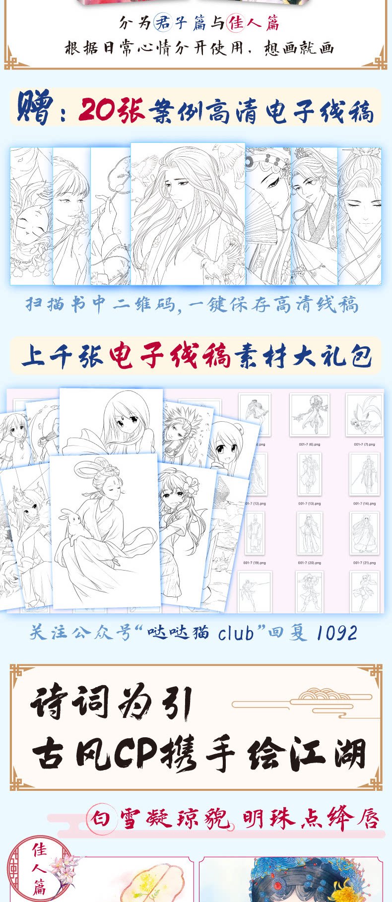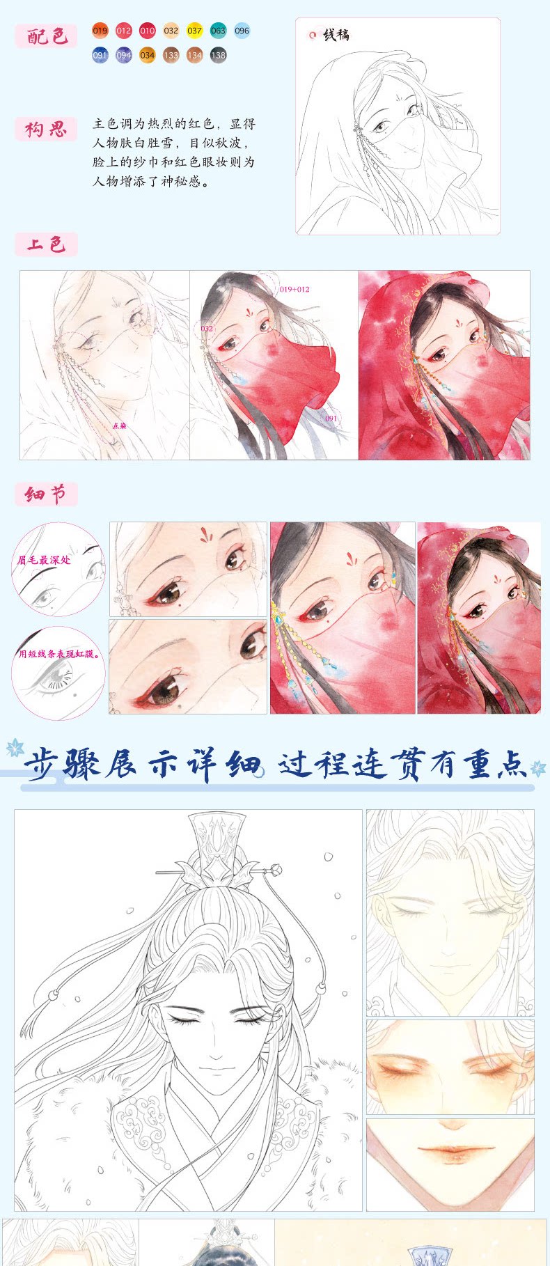 佳人篇 其一 古韵技法 画材的选择 \8 女性人物造型技巧 \10 古风配色 \14 运笔技巧 \16 其二 佳人倾城 目似水横波 20 朱樱点绛唇 26 枉凝眉 32 云鬓香 40 蝶恋花 46 红酥手 54 翩若惊鸿 60 白日何短短 68 霓裳舞 74 如梦令 82 君子篇 其一 古韵技法 男性人物造型技巧 \92 着色要点 \94 其二 君子如玉 寒星落九天 102 陌上桑 108 吹梦到西洲 114 宿云微 122 穿花拂柳 128 苍山远 134 千里不留行 140 心悦君兮君不知 146 鹤冲天 152 侠客行 160 |