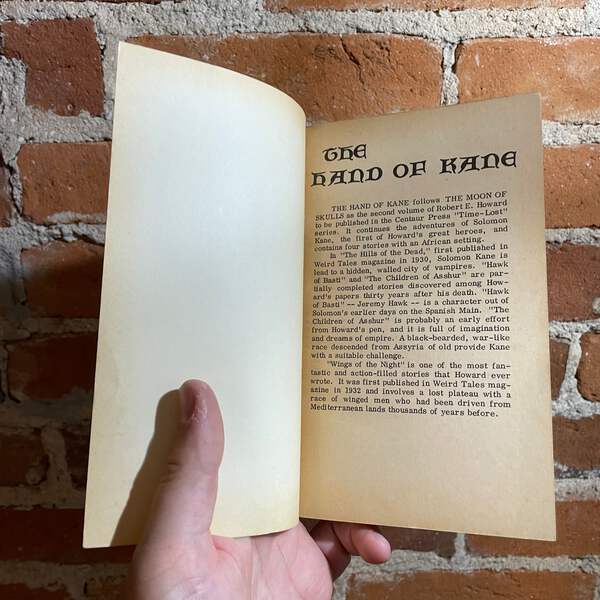 “He was . . . a strange blending of Puritan and Cavalier, with a touch of the ancient philosopher, and more than a touch of the pagan. . . . A hunger in his soul drove him on and on, an urge to right all wrongs, protect all weaker things. . . . Wayward and restless as the wind, he was consistent in only one respect—he was true to his ideals of justice and right. Such was Solomon Kane.”