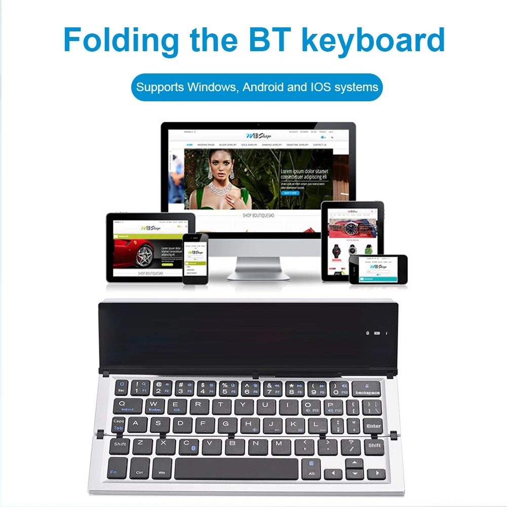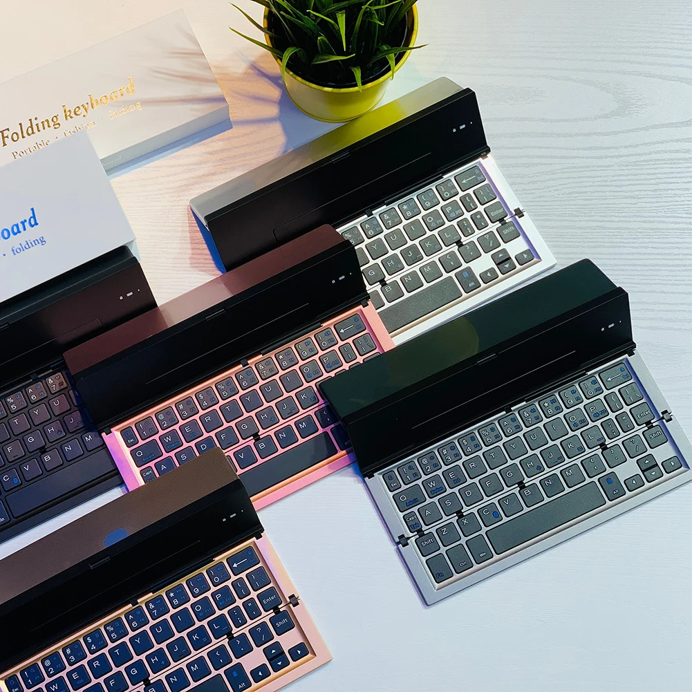 Foldable Tablet Keyboard Aluminium Alloy Portable Keyboard Lightweight Dustproof Bluetooth-compatible for Universal Tablet Phone