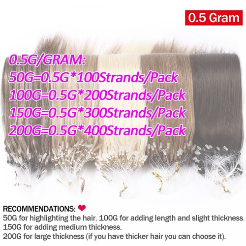 ---Micro ring beads hair extensions made from 100% real premium human hair.No mixed animal or synthetic hair.No tangle,no shedding,feel silky and soft.Thick and healthy ends,no dry no split.Naturally blend with your hair.