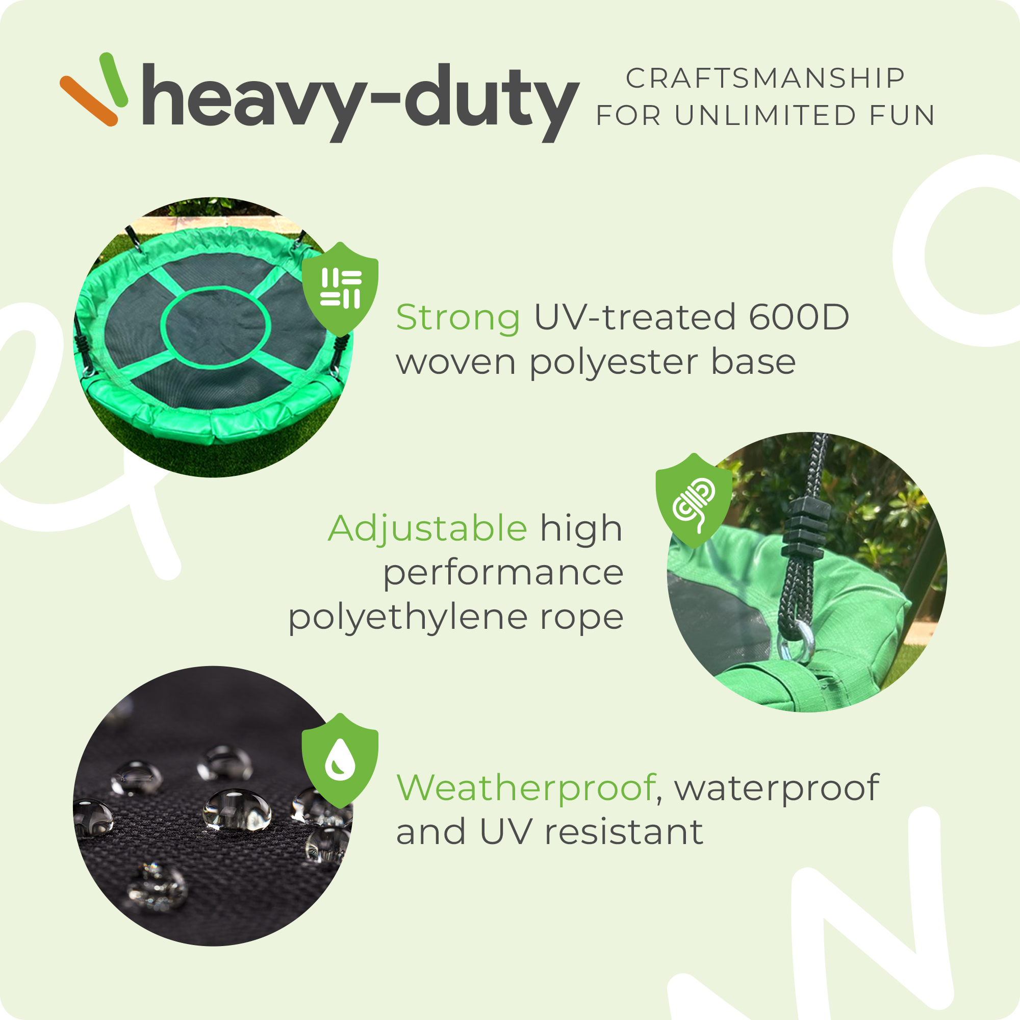 Get ready for seasons of swinging fun with a swing that’s made to handle it all. The gobaplay FlyMax Saucer Tree Swing is a high-quality addition to your outdoor play area that families will enjoy for years to come.