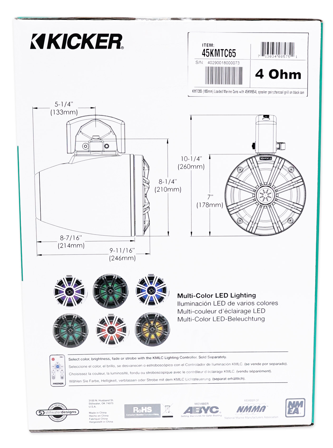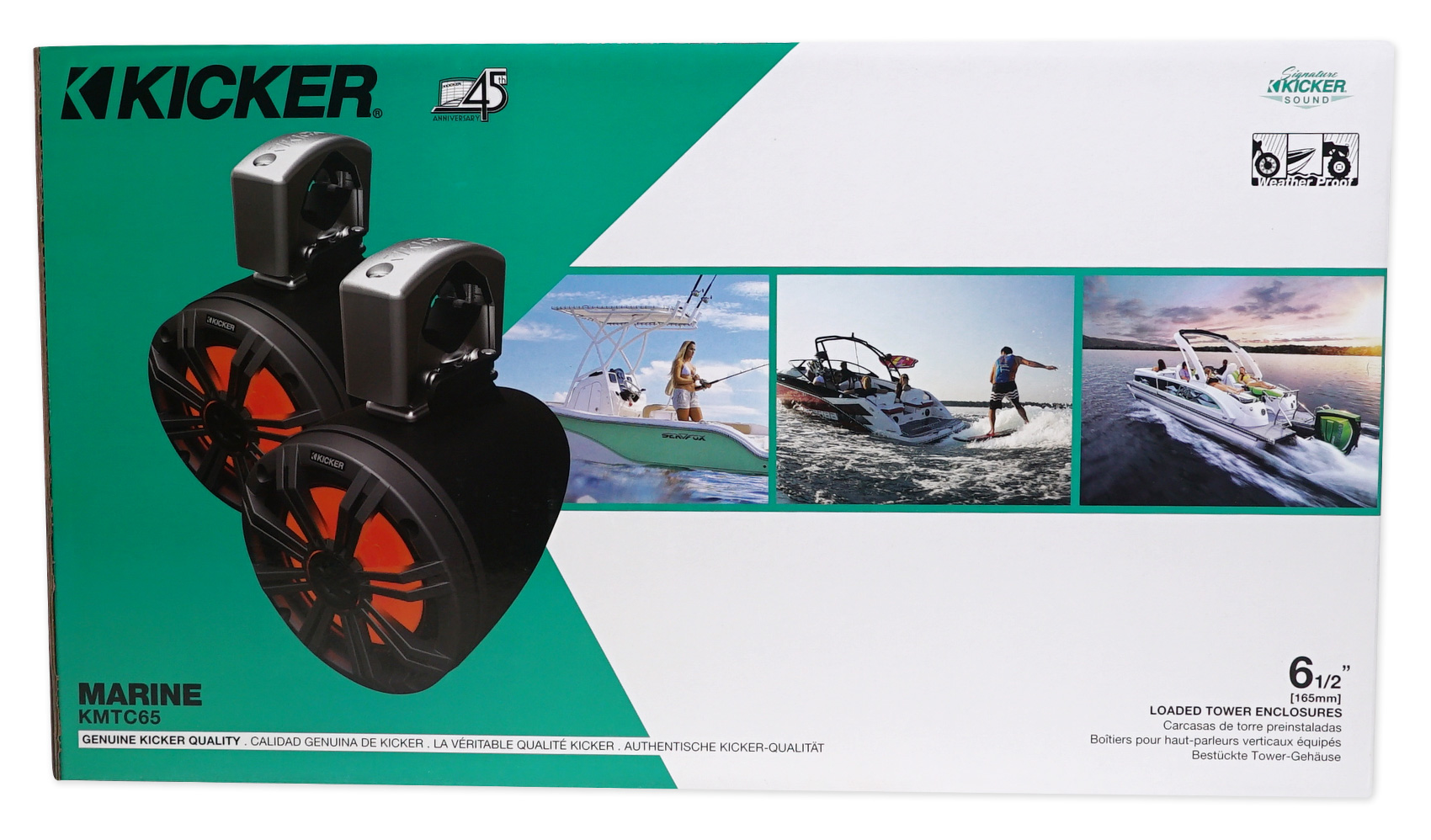 Livin’ Loud and looking good, KICKER KMTC65 Coaxial Tower Systems are the flexible, stylish solution your boat needs. You want great looks, total adjustability and next-level sound quality on your boat, whether you’re cruising to your favorite fishing hole or rockin’ at Party Cove. Rotate the speaker in any direction without tools, then watch the LED’s light up the night. Sold as pairs.