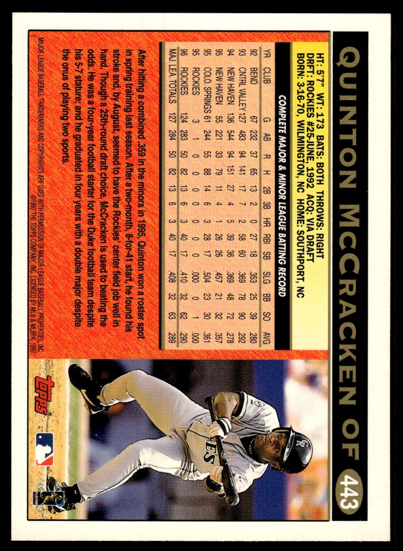 | 1997 Topps Baseball Card 443 Quinton McCracken |