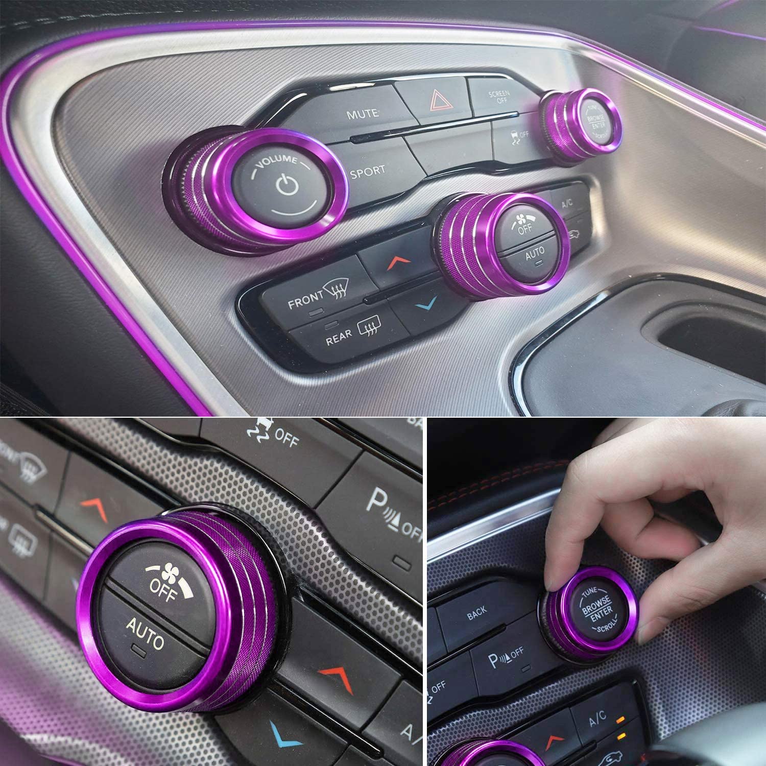 3 AC Radio Switch Trim Ring Knob Cover for Dodge Challenger/Charger 15-20 Purple