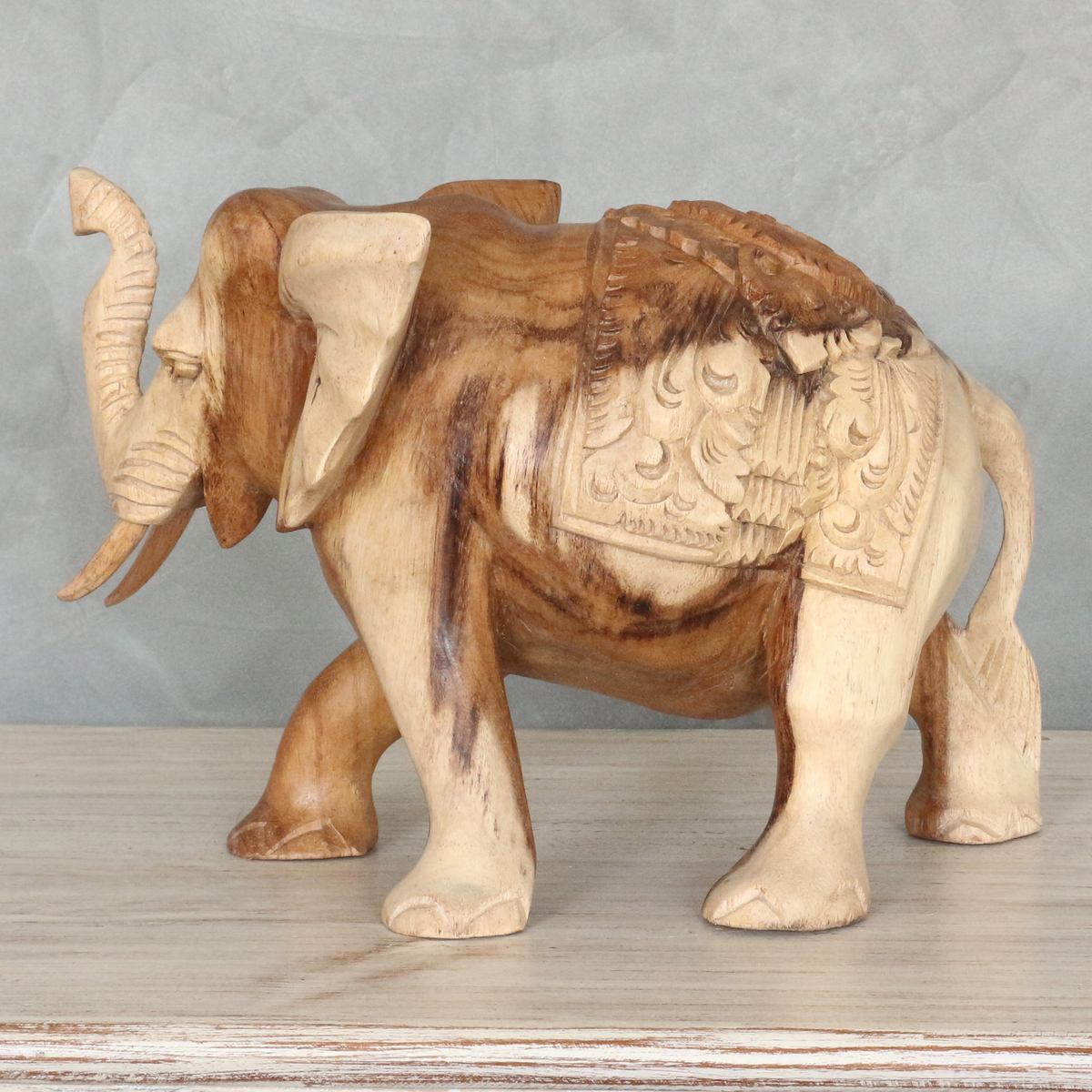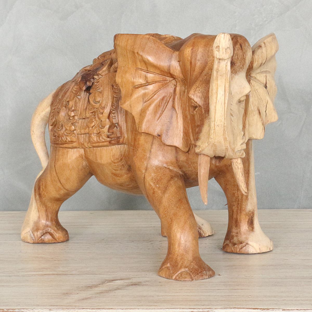 In liebevoller Handarbeit wurde die Skulptur in Indonesien aus hochwertigem Hartholz gefertigt. Der ruhige und warme Braunton verleiht der Figur eine große Natürlichkeit.