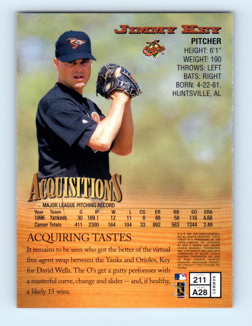 | 1997 Topps Finest Jimmy Key Baltimore Orioles #211 |