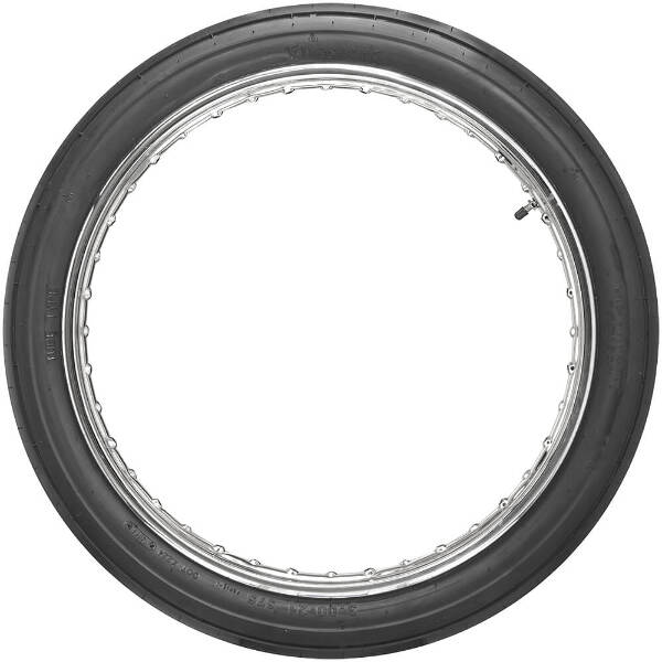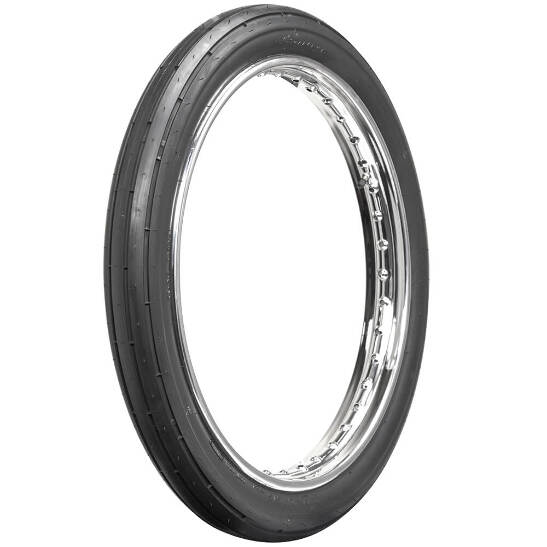 The Firestone motorcycle tires are an excellent fit for choppers, custom motorcycles and race-inspired bikes using a narrow twenty-one inch front wheel. These Firestone Ribbed 21 inch Motorcycle tires have a straight-groove tread pattern and a simple sidewall design. These are a great vintage look for any custom motorcycle with a 21-inch front wheel. Coker Tire Company caters to custom motorcycle builders around the world with several Firestone product offerings for vintage and custom bikes.
