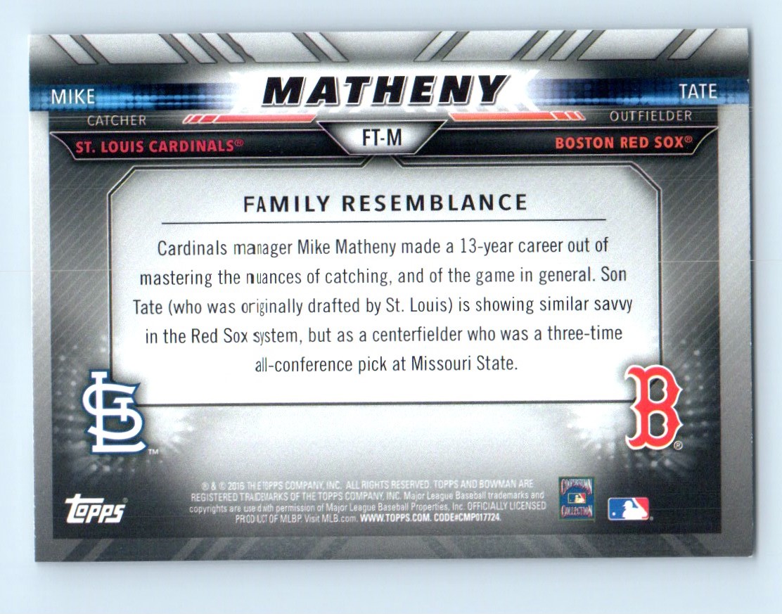 | 2016 Bowman Family Tree Mike Matheny / Tate Matheny St. Louis Cardinals / Boston |