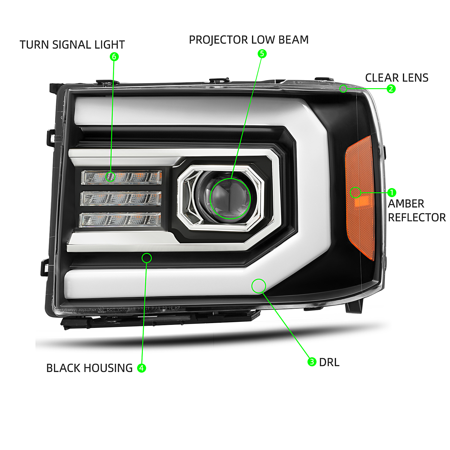 Fit 2007-2013 GMC sierra 1500/2500/3500HD Black Headlights Pair w/LED DRL+Signal