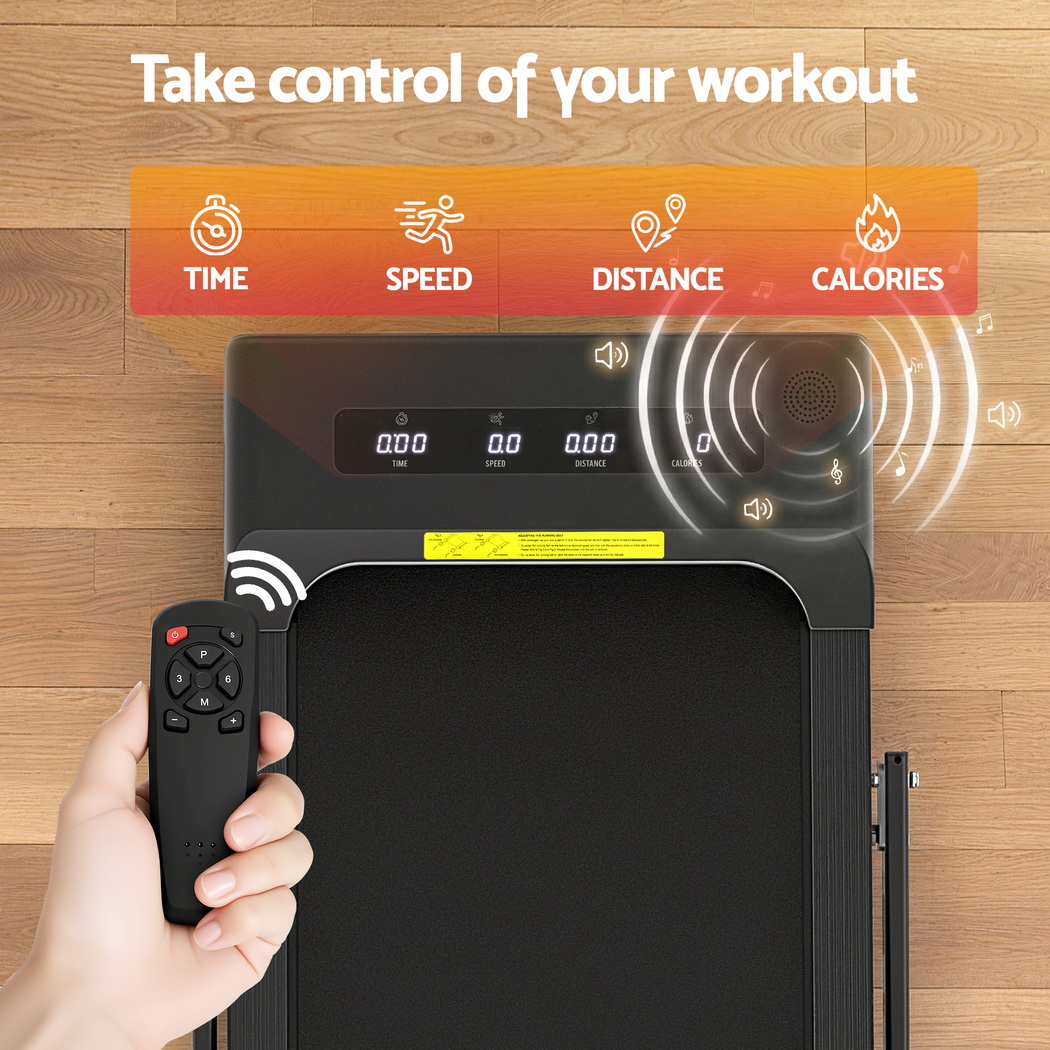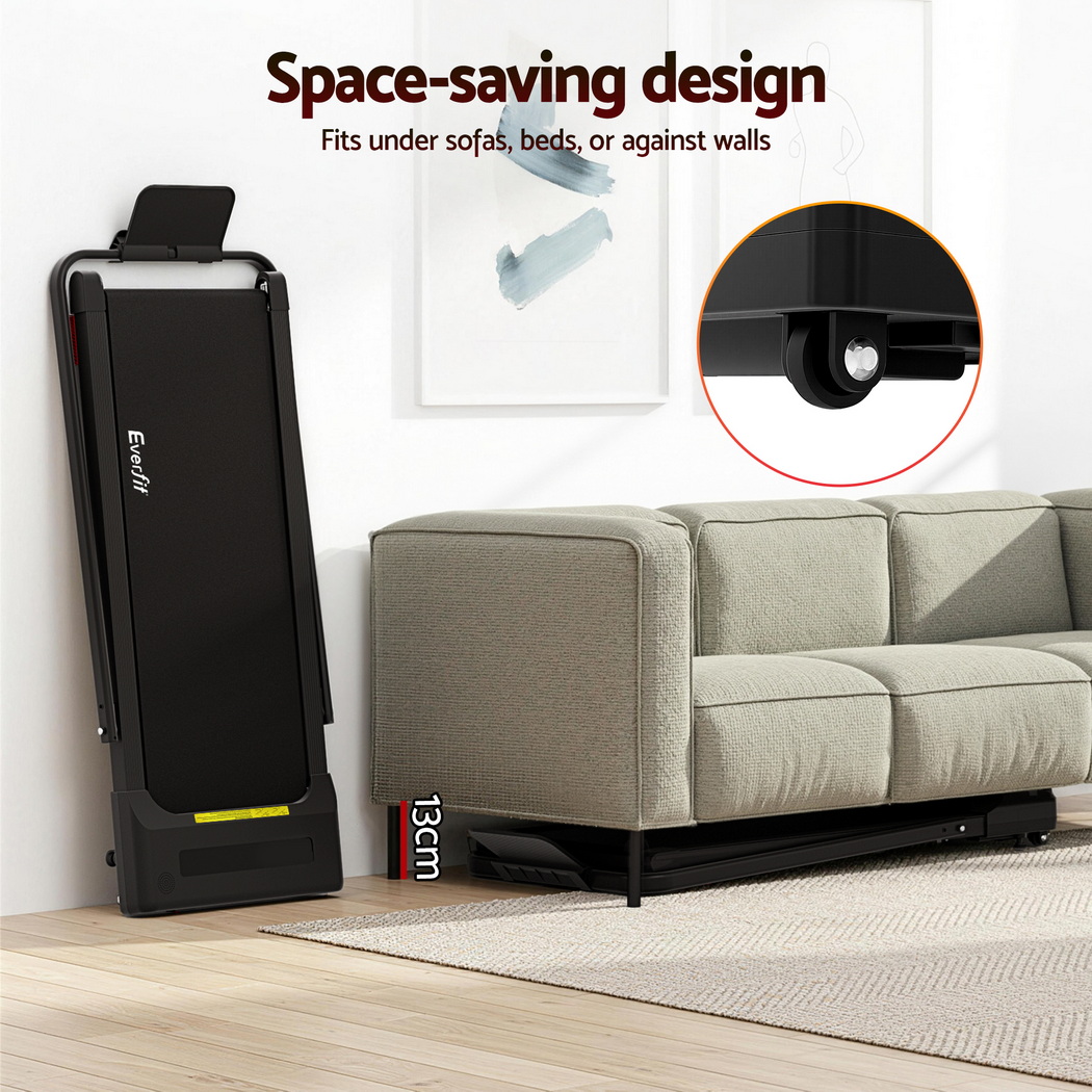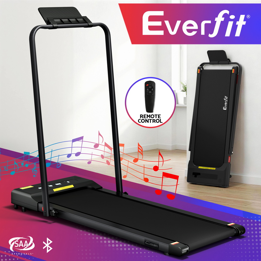 For a truly effective approach to weight loss and toning, our Everfit Walking Pad is your perfect companion. Compact and sturdy, the walking pad allows you to perform essential cardio exercises within the comfort of your home. It is foldable, easy to move, and comes ready to hit the ground running – no assembly required. Controlled by either the companion app or remote control, set up speeds of between 1km/h and 10km/h and monitor speed, time, distance and calories. Its powerful and energy-efficient motor produces smooth and seamless operation and the anti-slip belt phone holder makes your session a comfortable and controlled experience. The running belt uses an enhanced shock control system to help reduce the risk of joint injury, making the walking pad suitable for adults and seniors. When all the hard work is done, easily fold and store away the compact walking pad. Other great features include smooth wheels for easy mobility and Bluetooth speakers for entertainment while exercising. For health results that matter, our fitness walking pad is the one to run to.