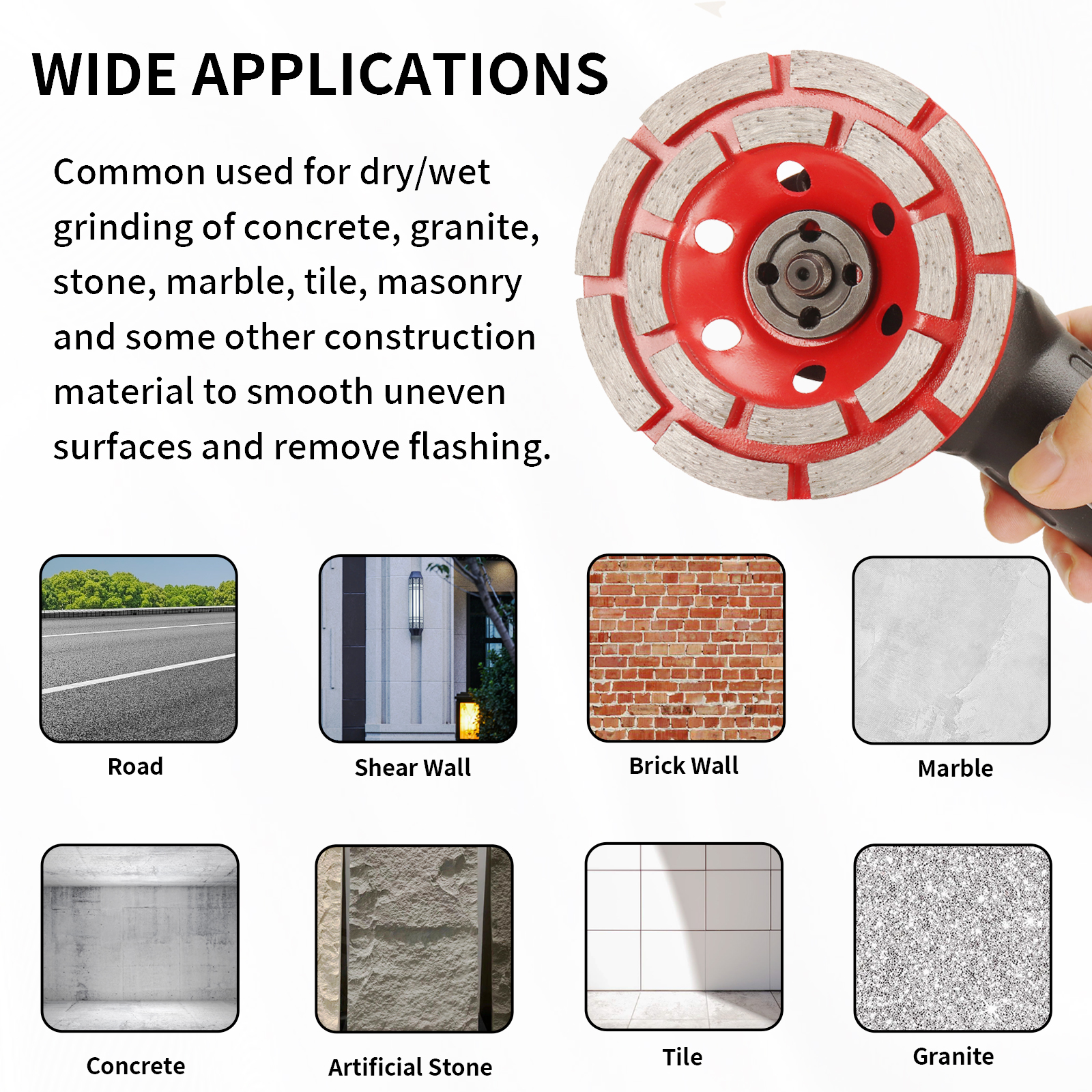 Diamond grinding wheel is widely used, can be used in a variety of scenes, applicability is very strong: suitable for concrete, marble, granite, stone, wall, floor and so on.