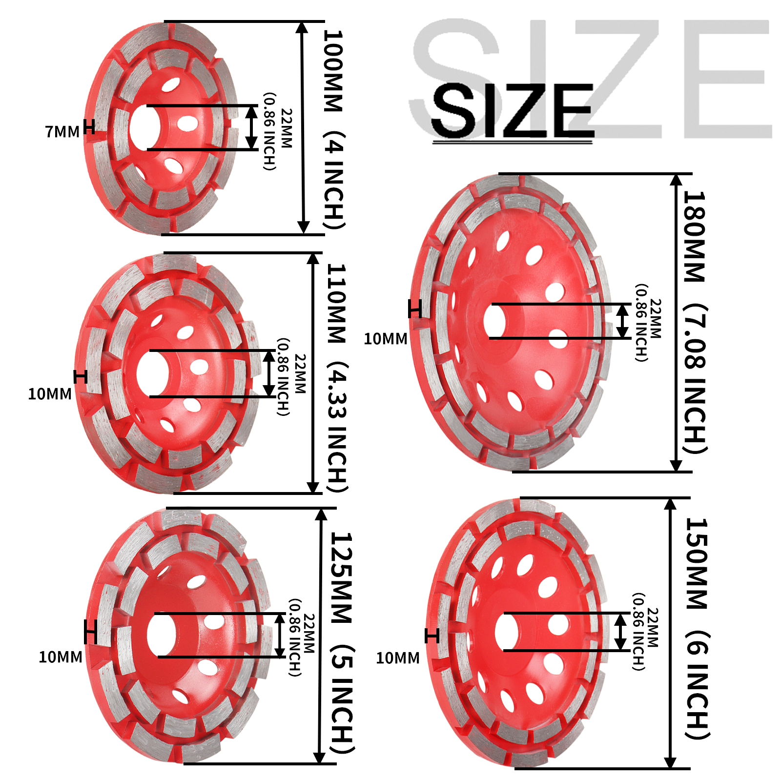 Diameter: 100mm (4 in) /115mm (4.5 in) /125mm (5 in) /150mm (6 in) /180mm (7 in)