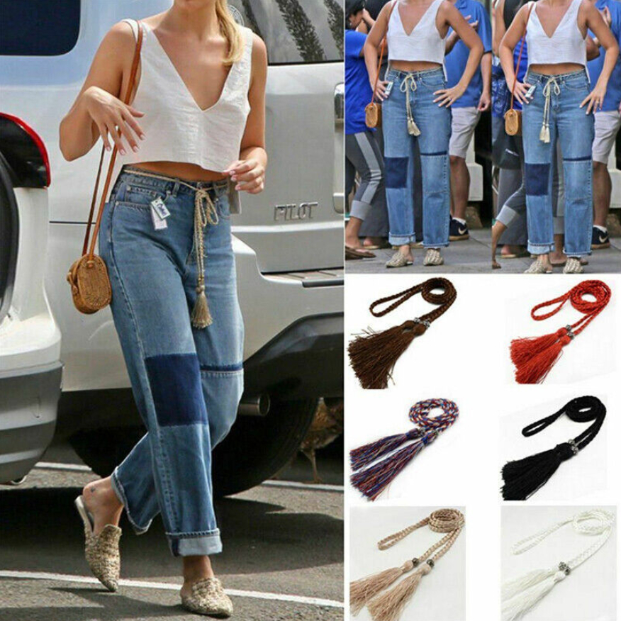 Tassel Belt Fashion Ladies Braided Belt Self-Tie Thin Waist Rope Dress Accessory